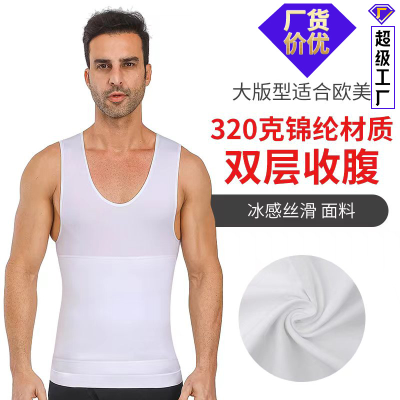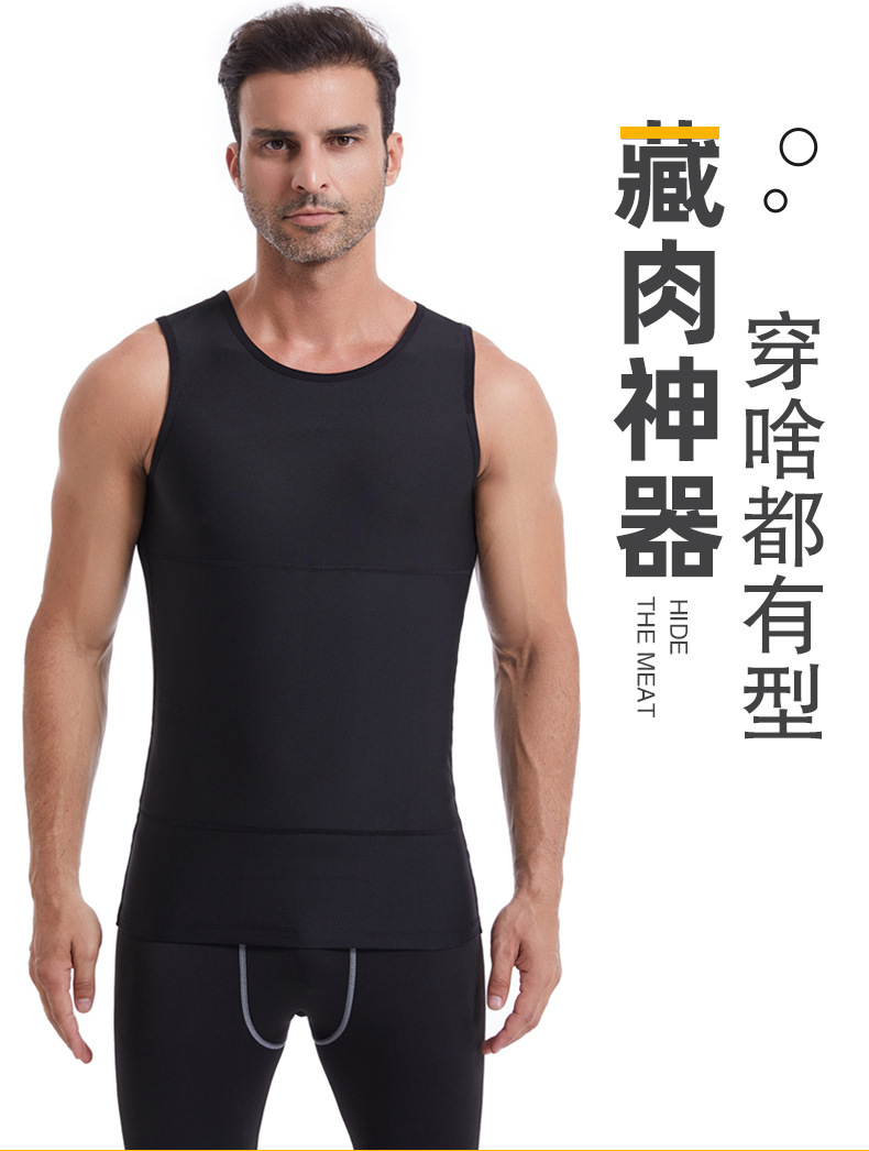 20 140D有缝男士塑身背心批发束身收腹塑胸藏肉打底工字背心跨境