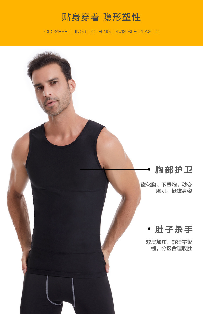 クロスボーダー140Dナイロン長糸男性のシェイプアップ服は腹を閉じて胸を隠して肉を隠します。