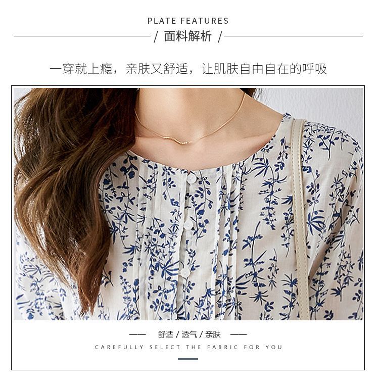コットンコクーンラウンドネック花柄シャツレディース長袖2025春田園風トップス小柄な甘い純綿シャツ