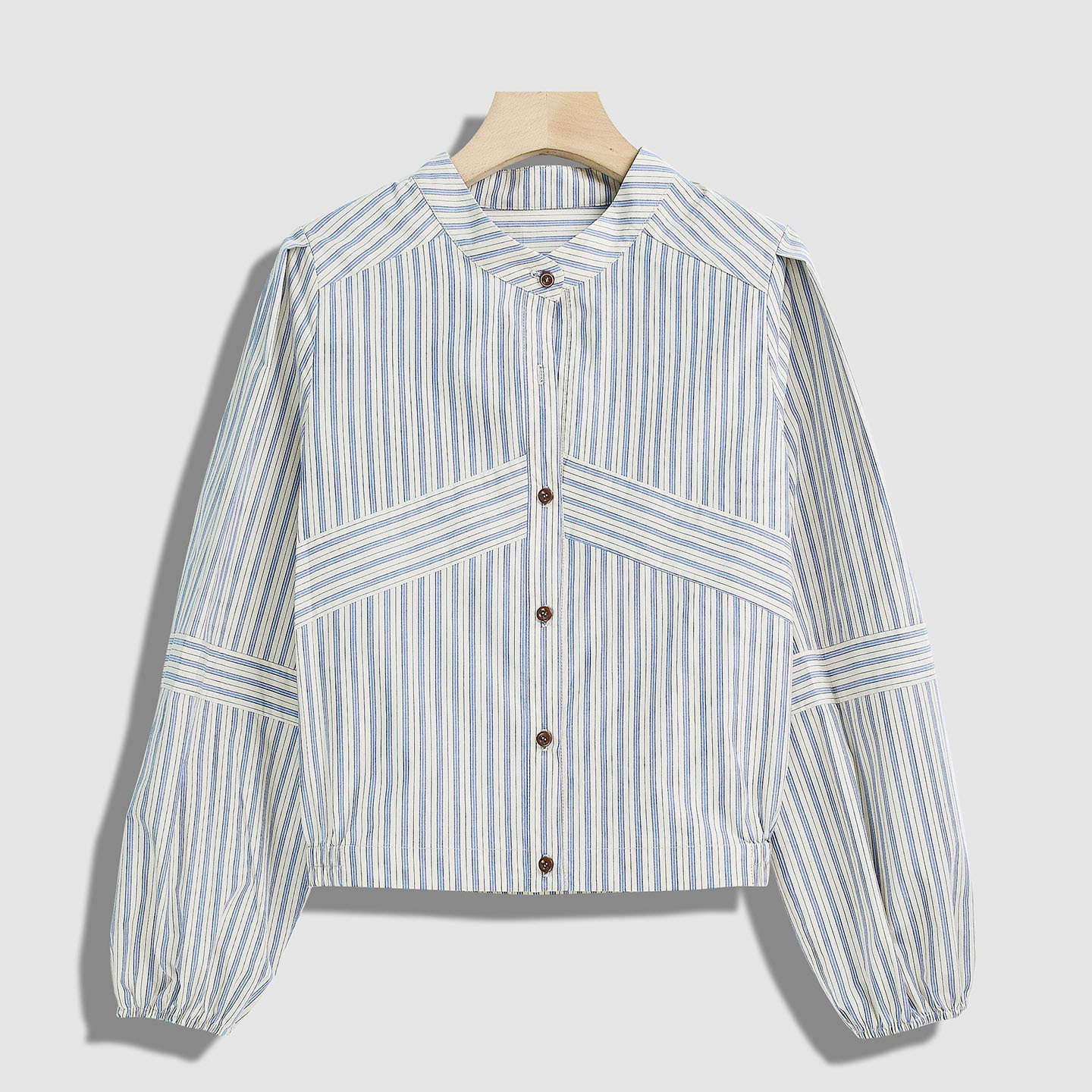 官网 条纹长袖女士衬衫25年秋季新款职业通勤休闲小衫小个子衬衣