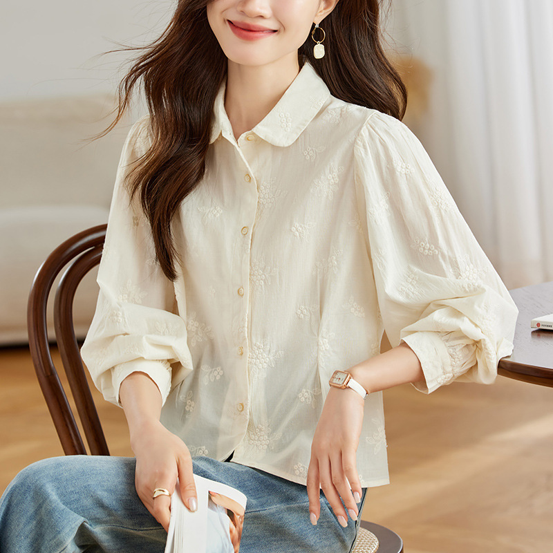 メーカー直販の甘い襟刺繍シャツ女性長袖綿シャツ
