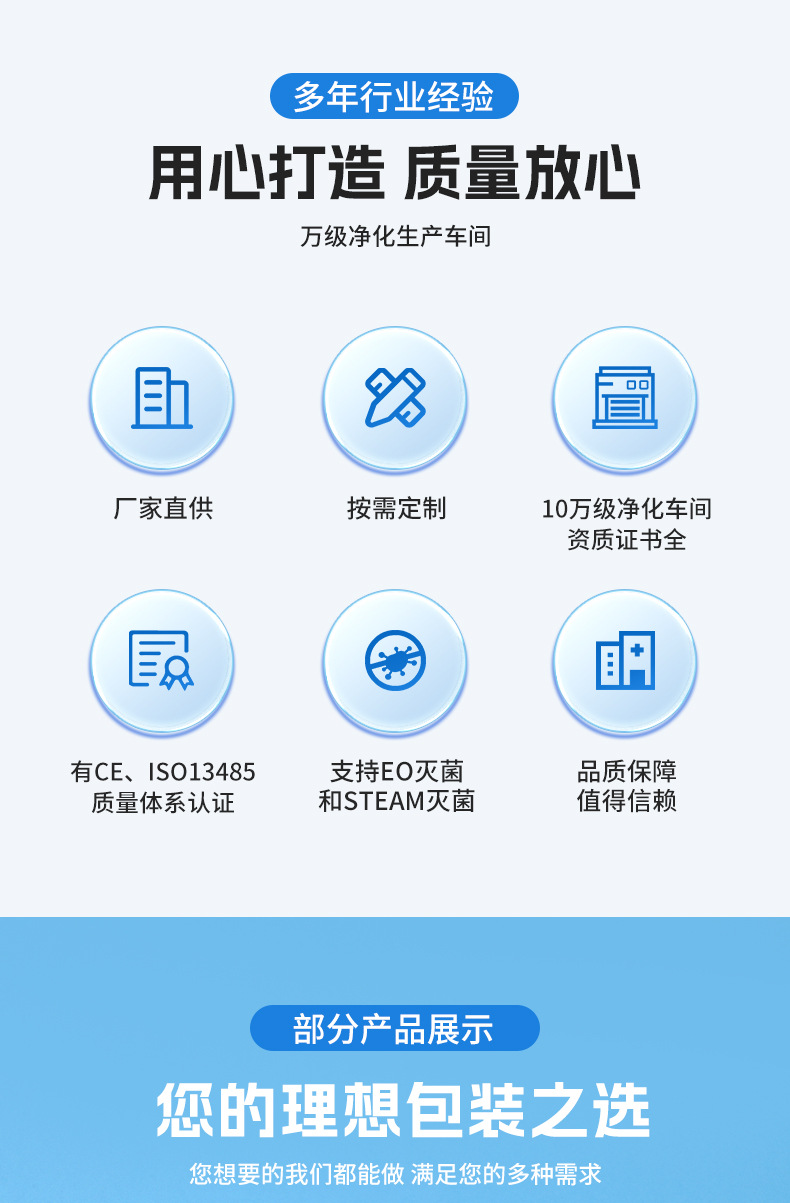 使い捨て消毒ジップロックバッグ滅菌バッグ10万レベル浄化ワークショップはEOと高温蒸気滅菌をサポート