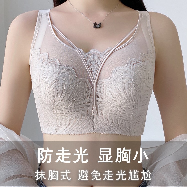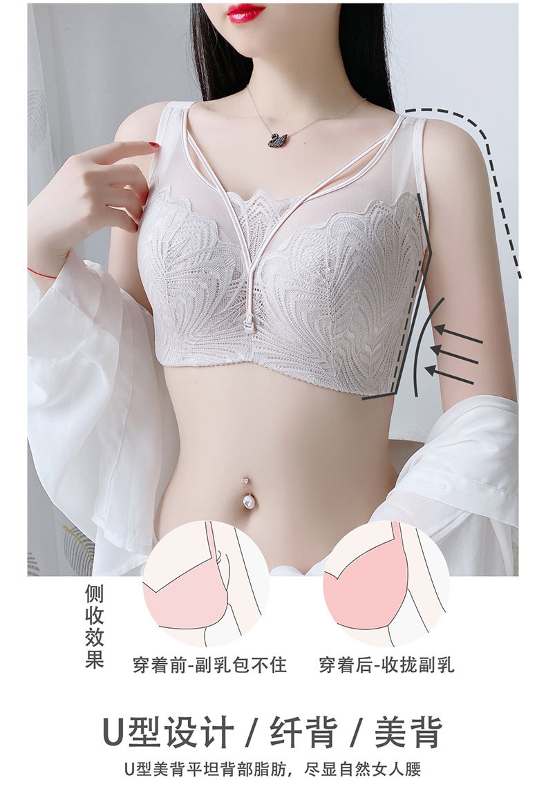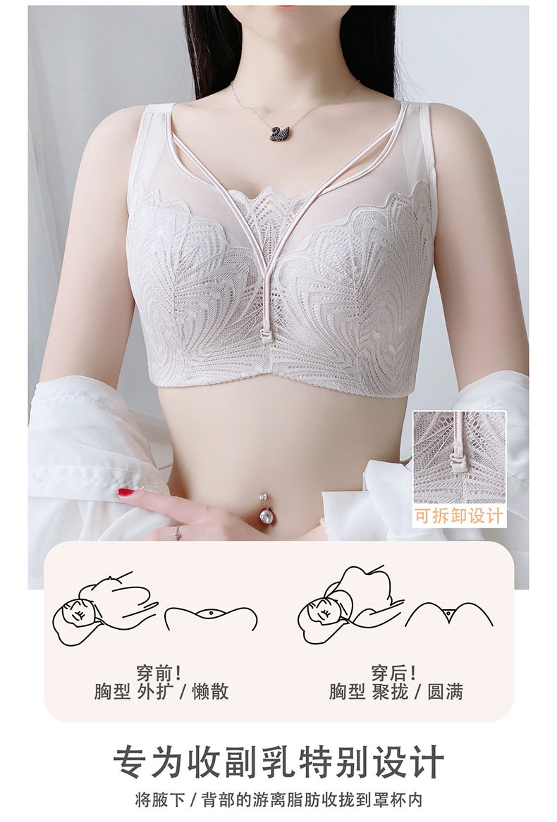 蕾丝款桑蚕丝内里小胸聚拢厚杯无钢圈收副乳调整型内衣女士文胸罩