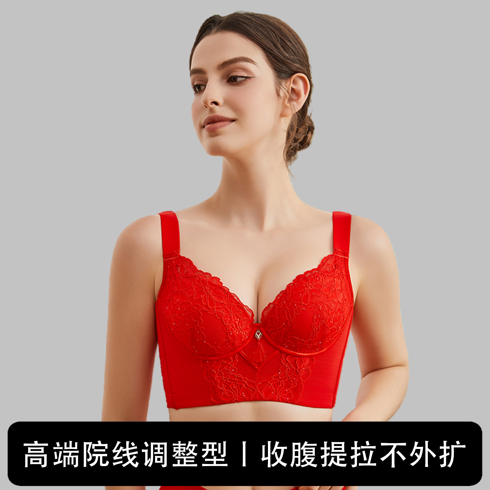 大红本命年结婚聚拢大胸显小内衣女收副乳防外扩软钢圈全罩杯文胸