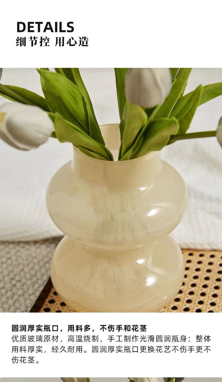 クリーム風ガラス花瓶置物リビング生け花透明水養高級感ins装飾ネット赤小衆花瓶
