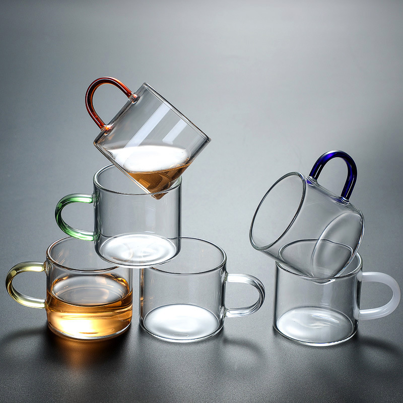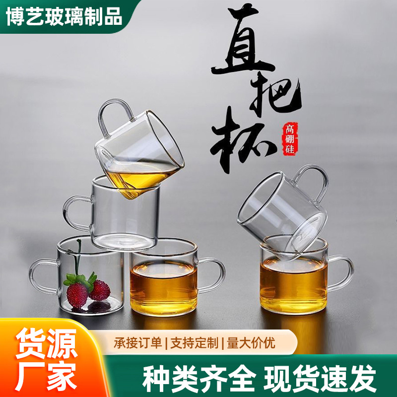 高ホウケイ酸ガラスティーカップハンドル付きマスターカップおもてなし飲料水カップ耐熱透明カンフー小さなティーカップ
