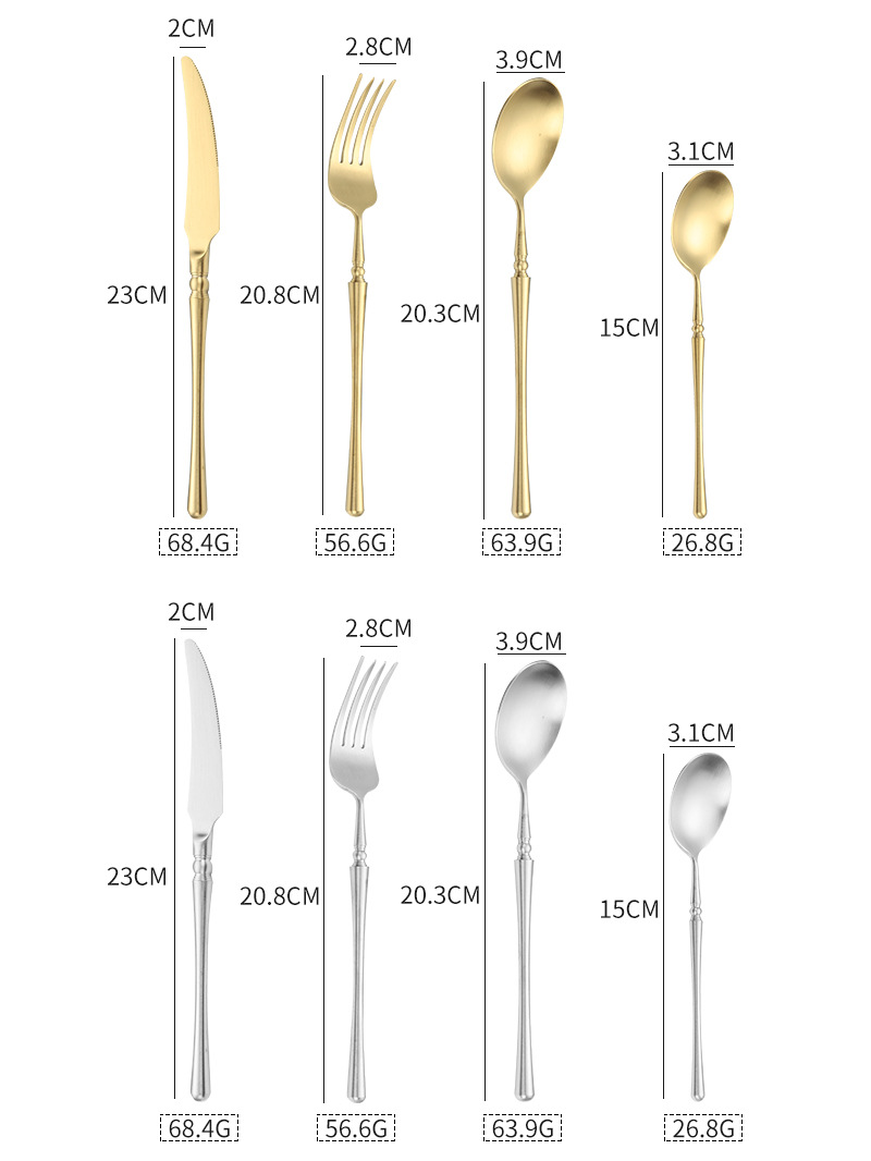 カラー 砂-銀色のナイフ,光沢-銀色のフォーク,砂-銀色のスプーン,砂-銀色のティースプーン,光沢-銀色のナイフ,光沢-銀色のフォーク,光沢-銀色のスプーン,光沢-銀色のティースプーン,砂光-金色のナイフ,砂光-金色のフォーク,砂光-金色のスプーン,砂光-金色のティースプーン,光沢-金色のナイフ,明るい光-金色のフォーク,光沢-金色のスプーン,明るい光-金色のティースプーン