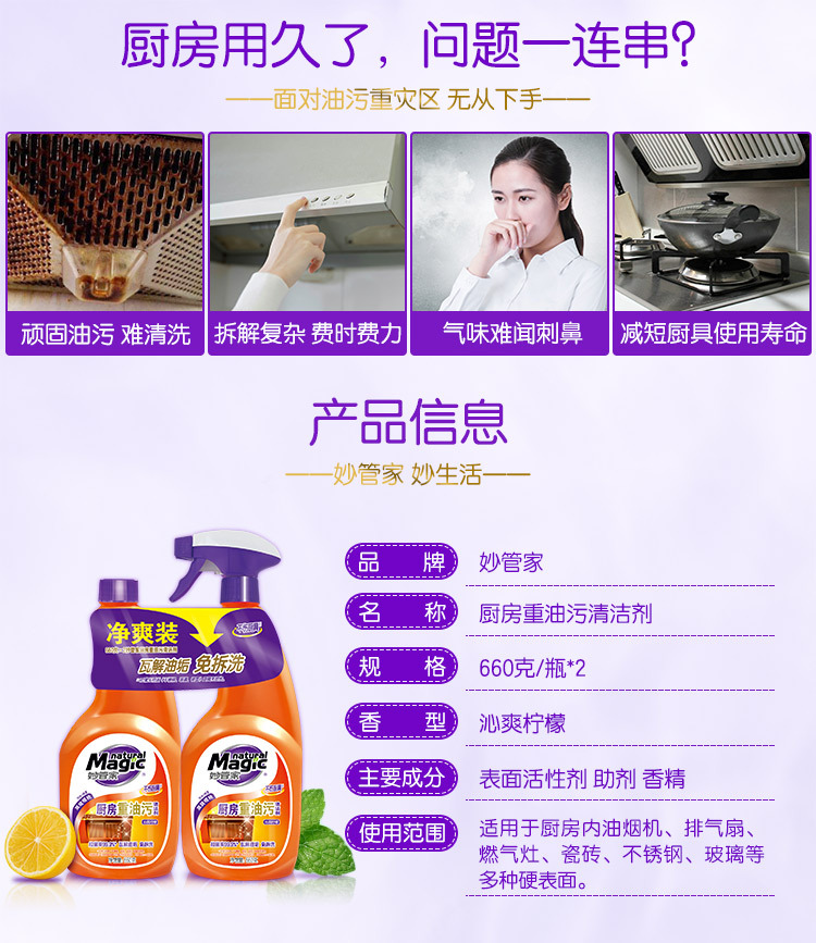 妙管家キッチン油汚れ洗浄剤660g*2本レンジフード洗浄剤強力油汚れ除去全箱卸売