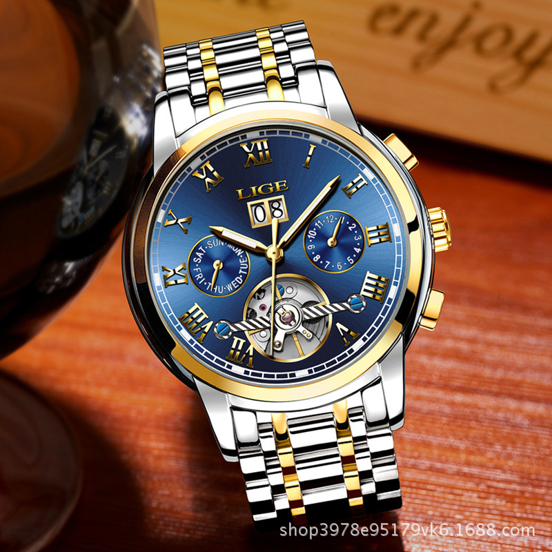 Lige利格の新型の爆発的な腕時計のドローイングの多機能の全自動機械の男性の時計の防水の運動の男性の腕時計