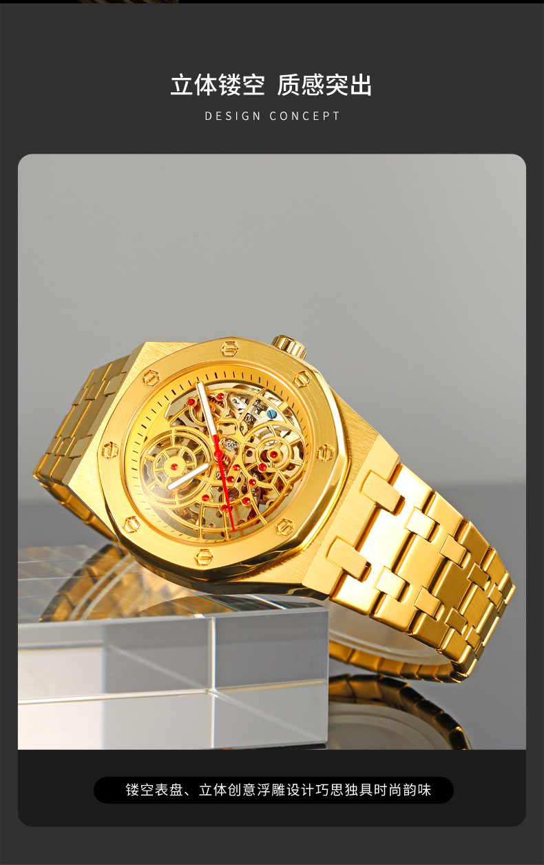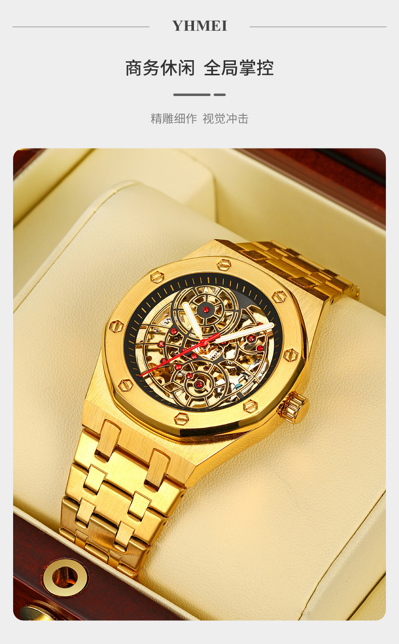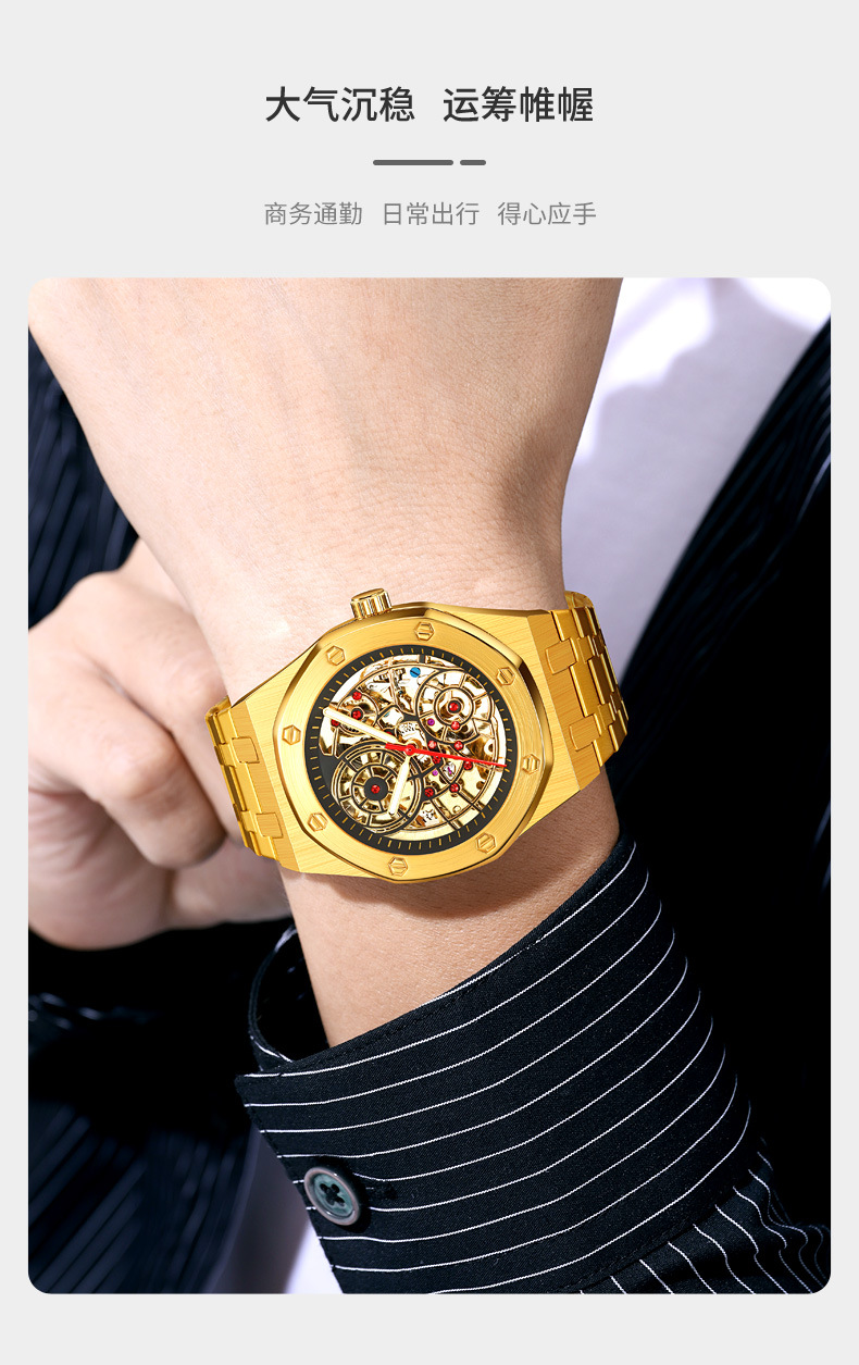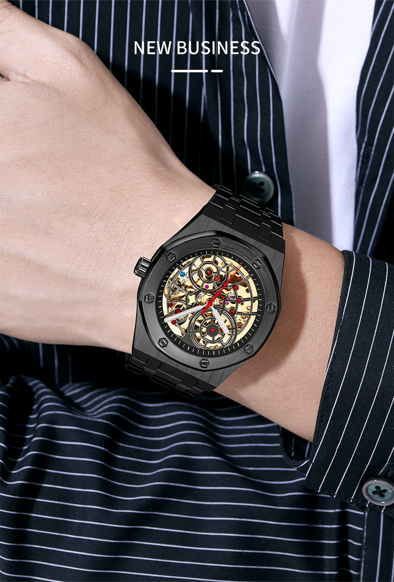 新型腕時計男機械時計全自動ジャイロ飛輪透かし彫り男性ファッションカジュアルビジネス男時計防水駿钰