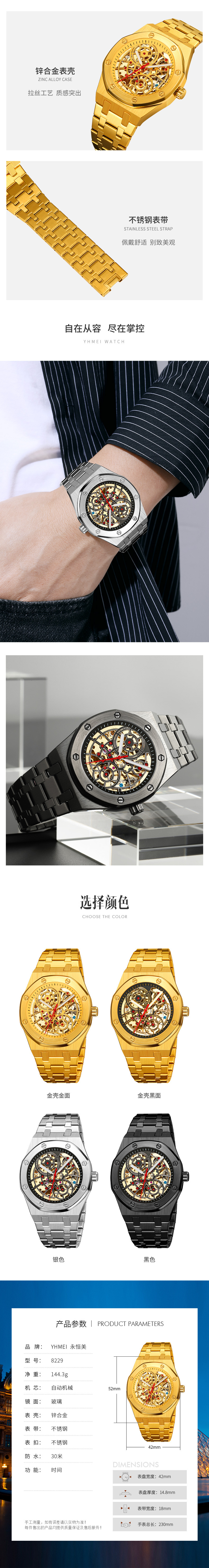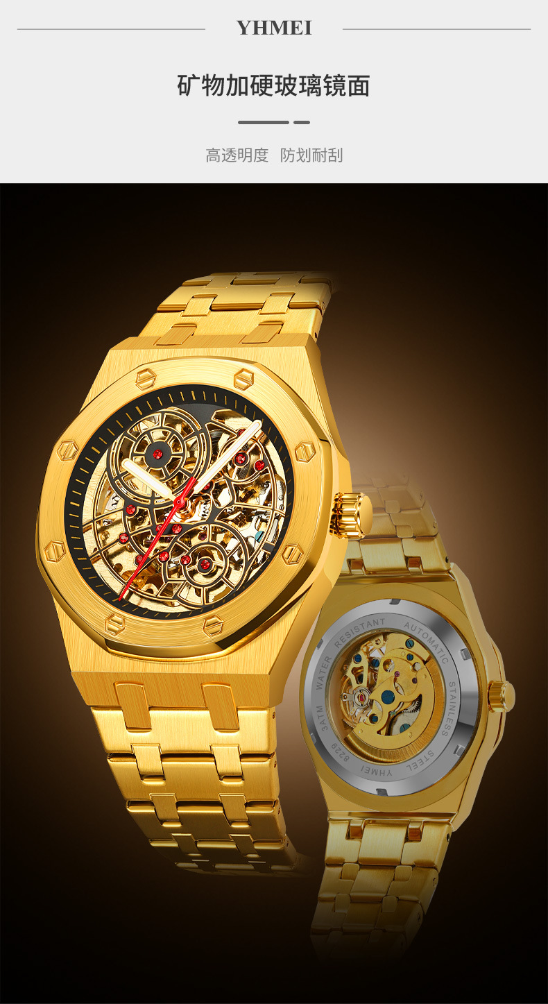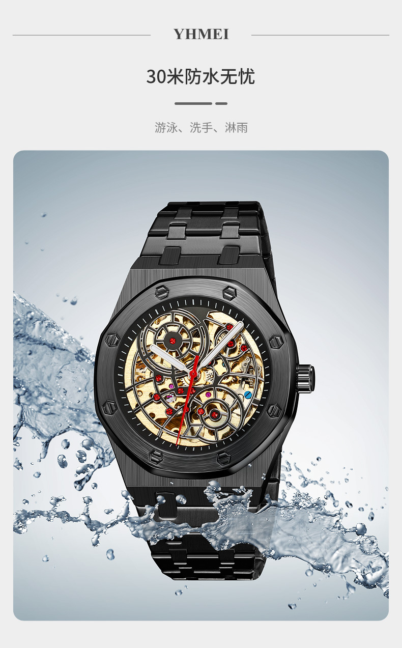 新型腕時計男機械時計全自動ジャイロ飛輪透かし彫り男性ファッションカジュアルビジネス男時計防水駿钰