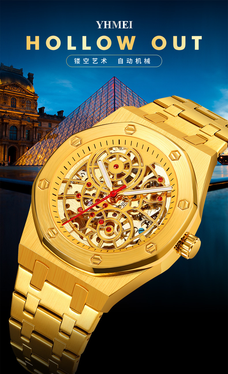 YHMEI 永遠の美しさの新しいファッショントレンドメンズビジネスホイールダイヤル中空デザインクォーツ時計