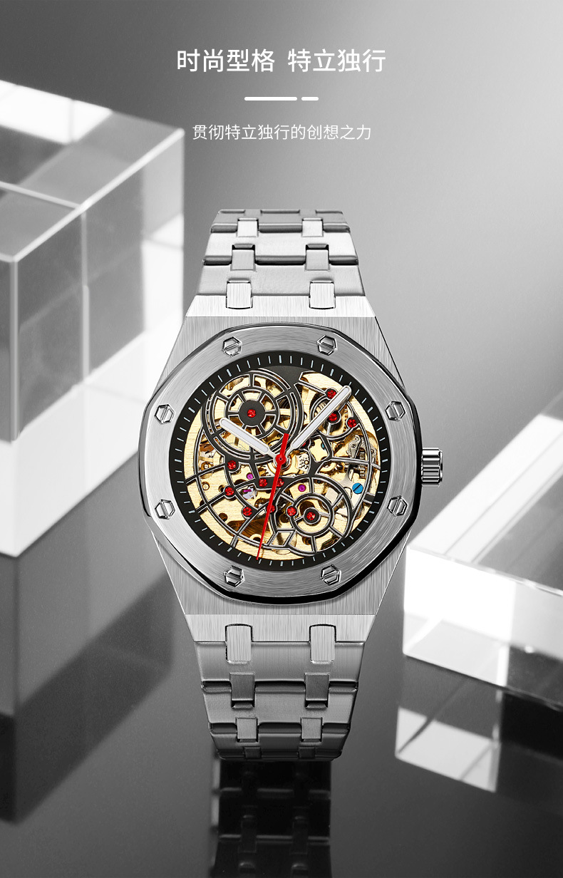 WOJTEK直播全爆款自动机械表时尚青龙夜光防水机械手表男表批发