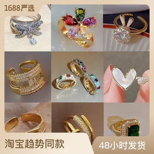爆款精致超闪皓石戒指小众轻奢个性女式开口可调节高级感戒指套装
