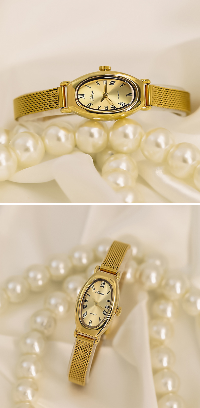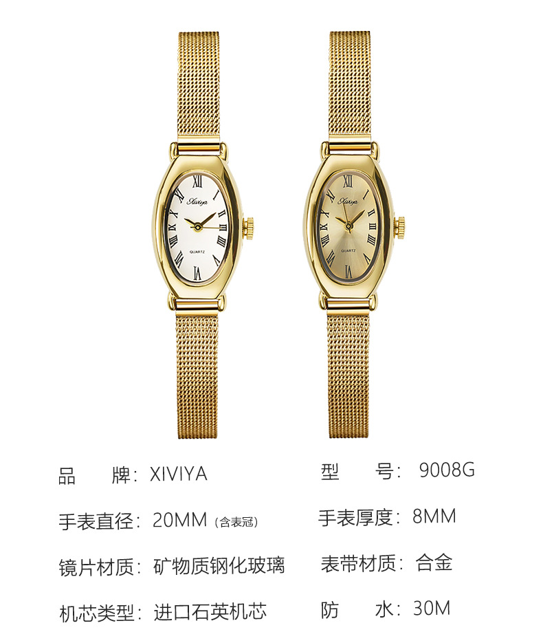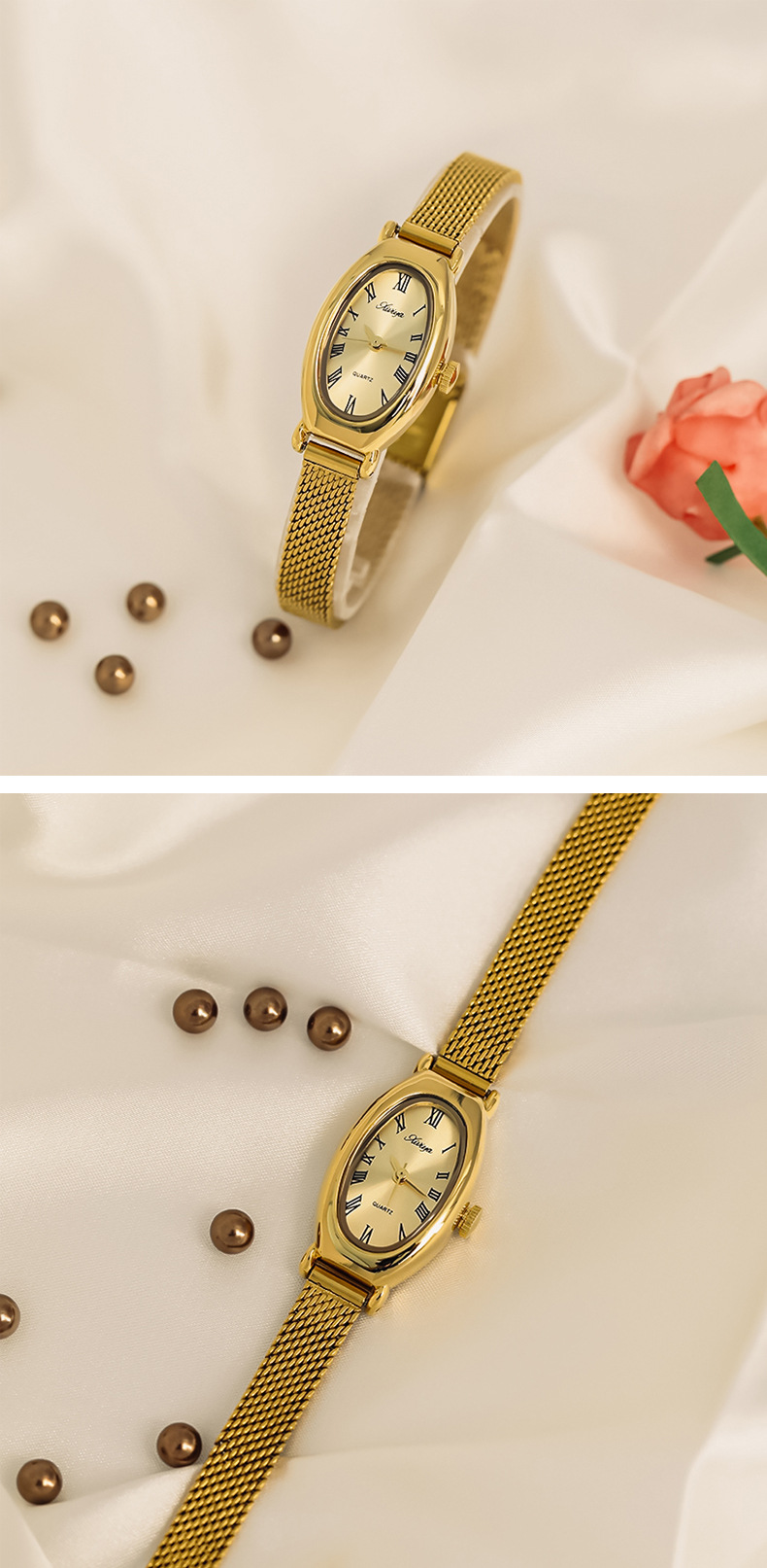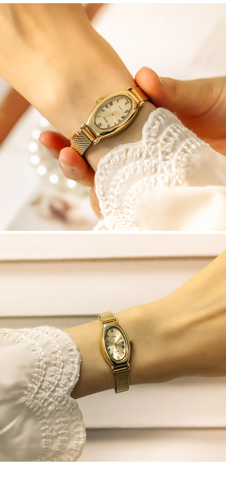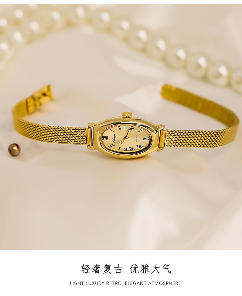 楕円形の腕時計の女性のネットは復古の小金の時計の気質の名媛の大きい札のシンプルな女性のファッションの潮流を持って生放送します。