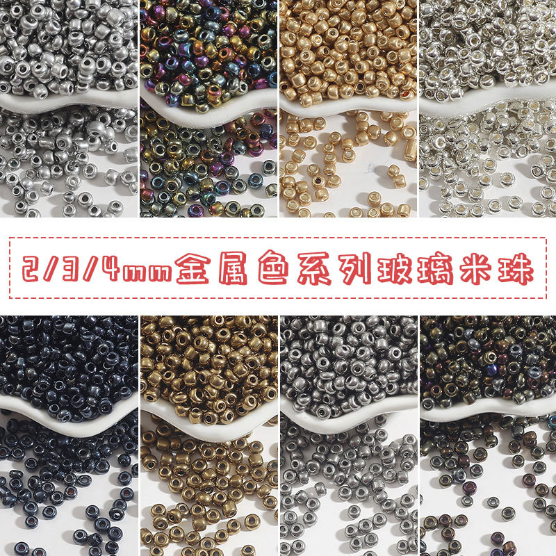 金属色ガラス米珠散珠ビーズアクセサリー手作りdiy自作ブレスレットアクセサリー材料卸売り