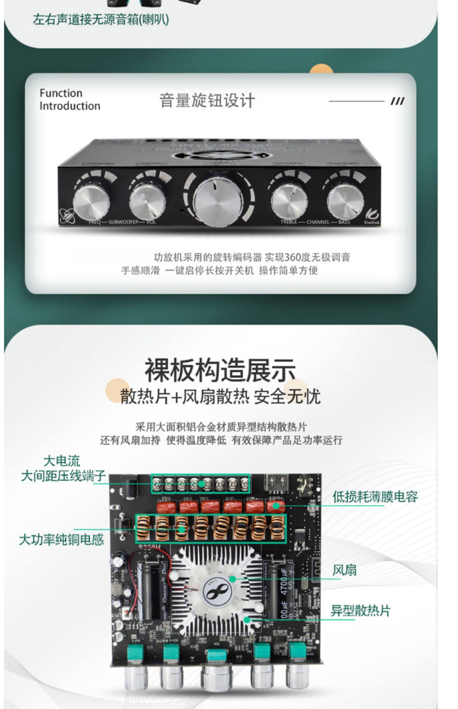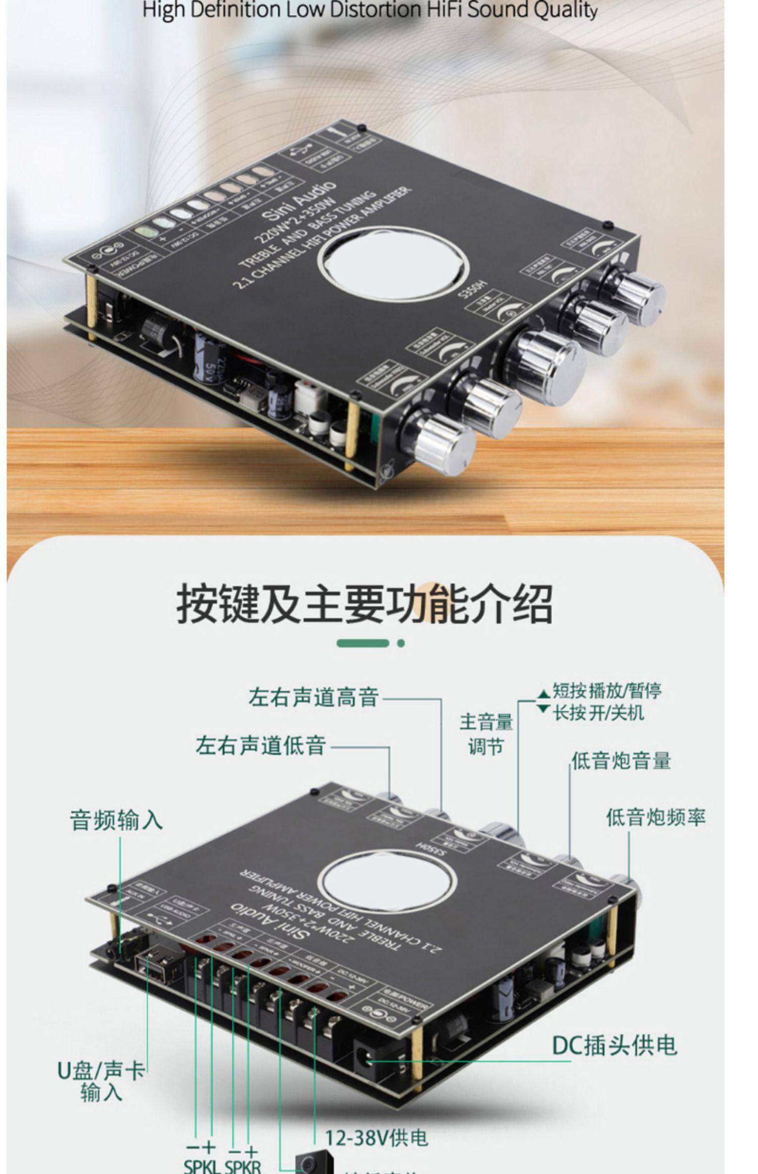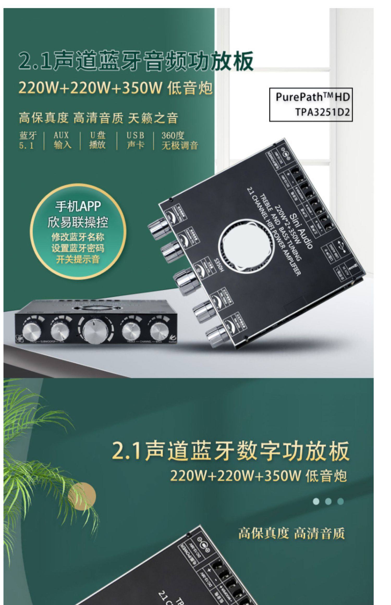 2.1チャンネルTPA3251 bluetooth功放板モジュール高低音サブウーファ220W * 2 350W超7498e