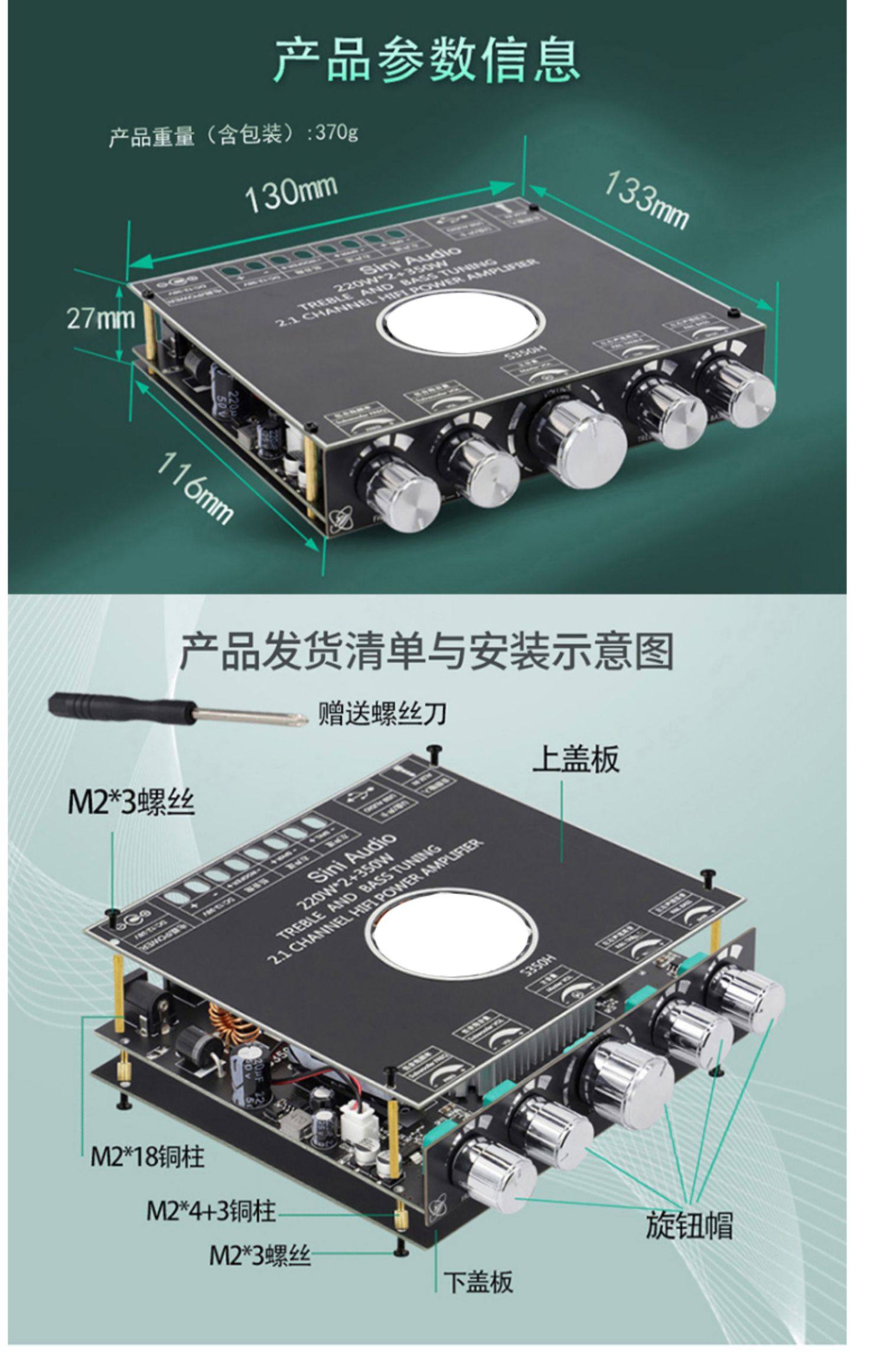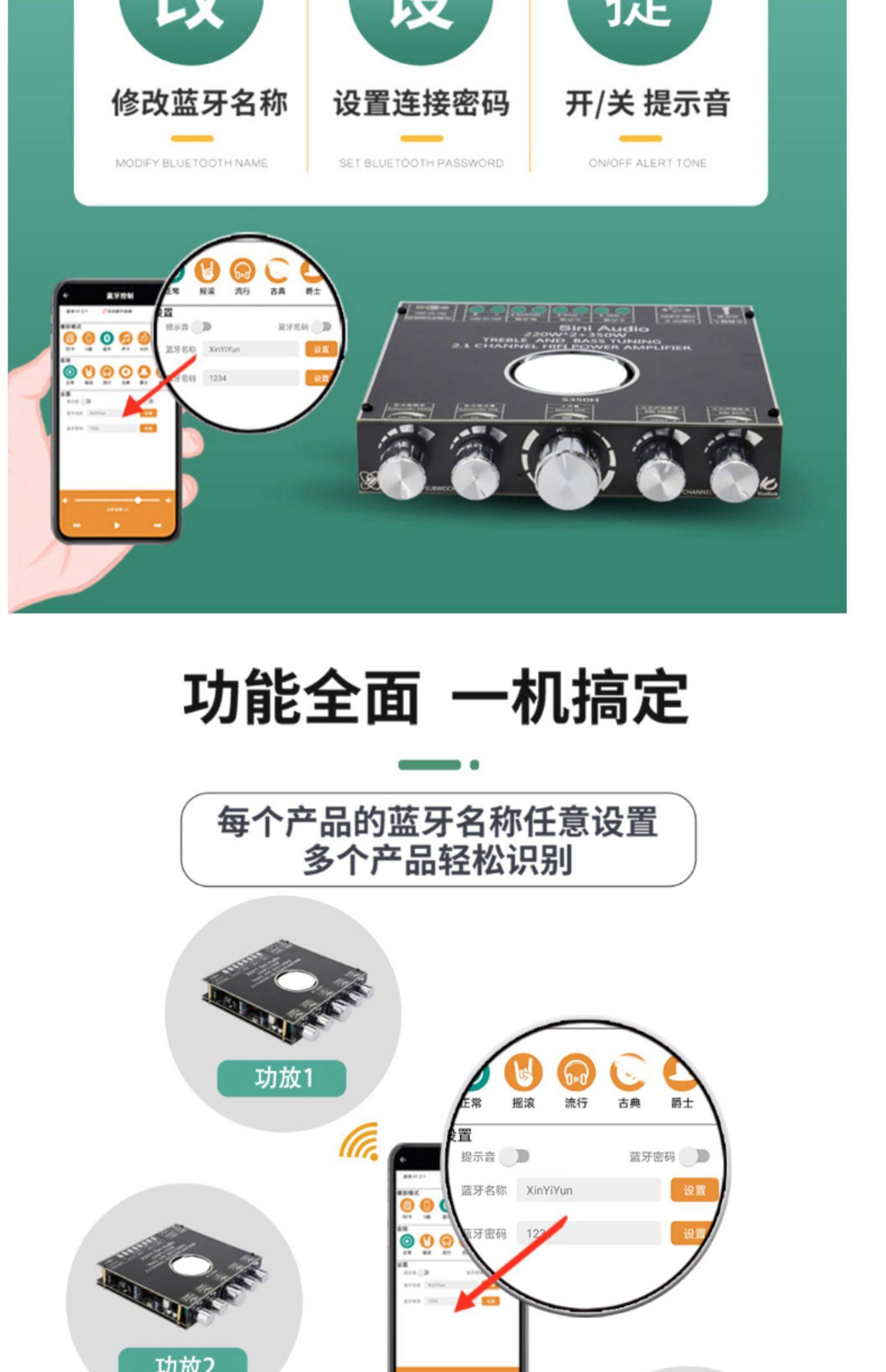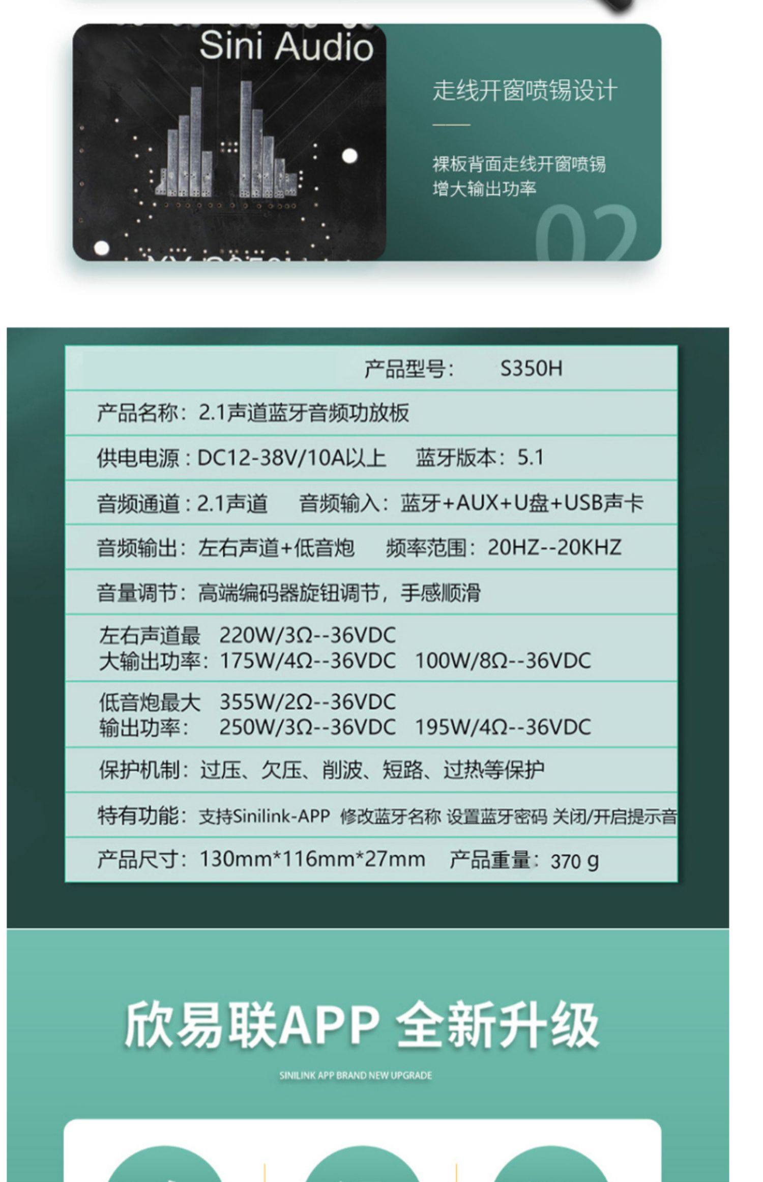 2.1チャンネルTPA3251 bluetooth功放板モジュール高低音サブウーファ220W * 2 350W超7498e