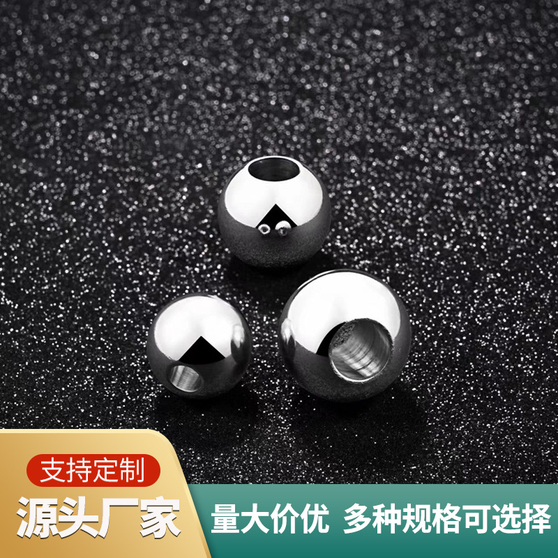 实心打孔钢球304不锈钢攻牙螺纹钢珠亮面电镀半孔铁球多规格钢珠