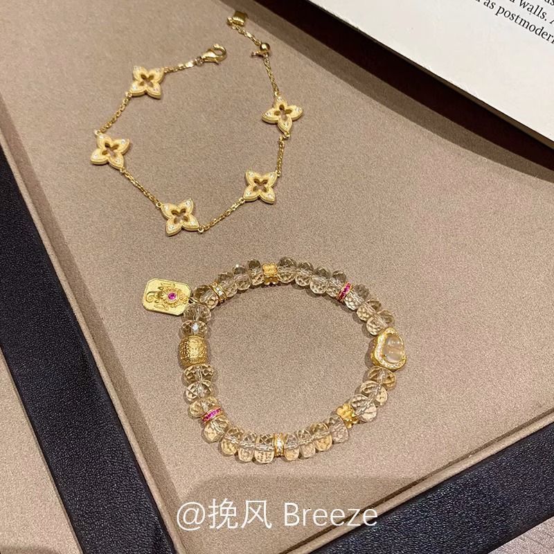 「八方来财」中古布契风镂空点钻四芒星手链女轻奢千金感叠戴手饰