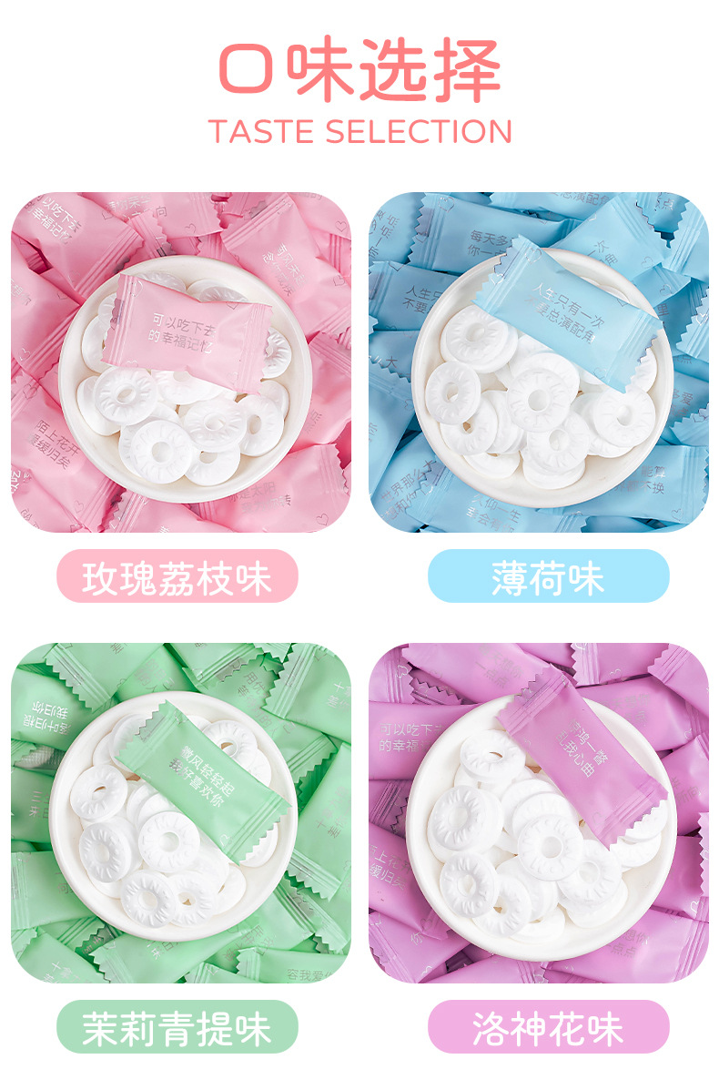 网红接吻糖薄荷糖果玫瑰花果清新口气高颜值散装香糖清凉甜糖果
