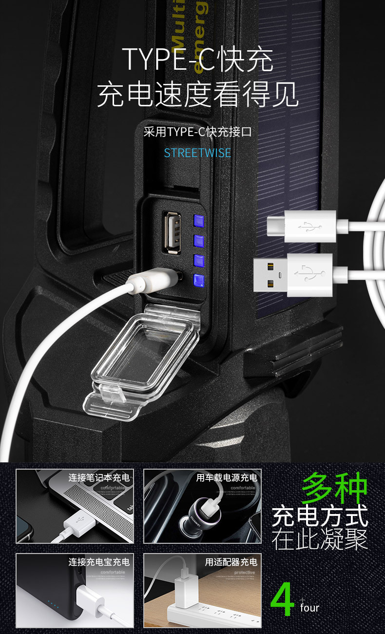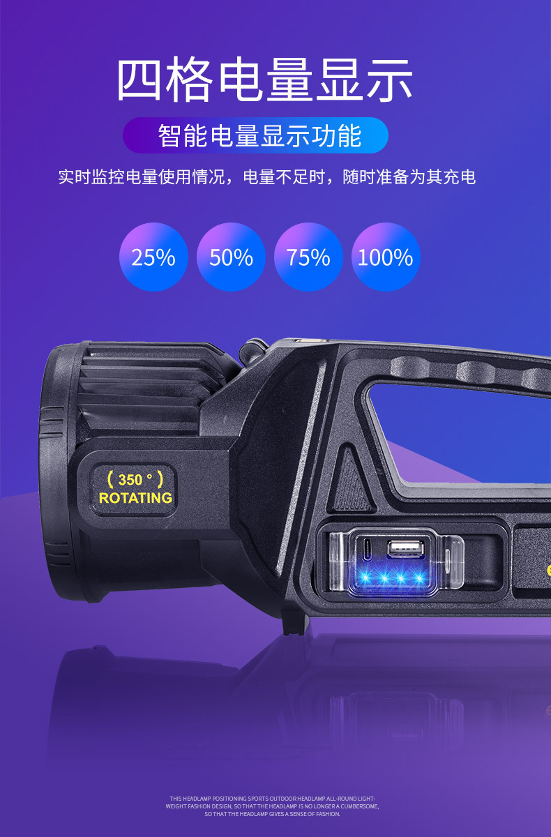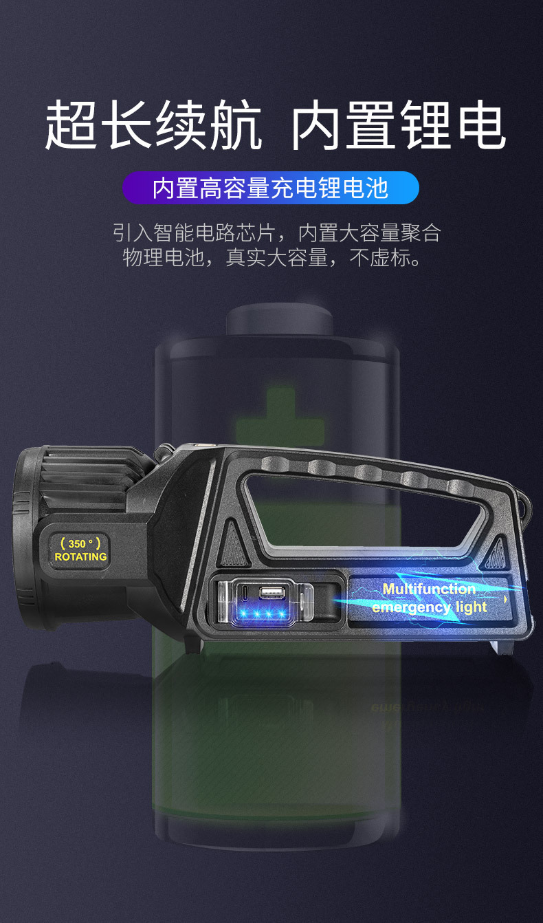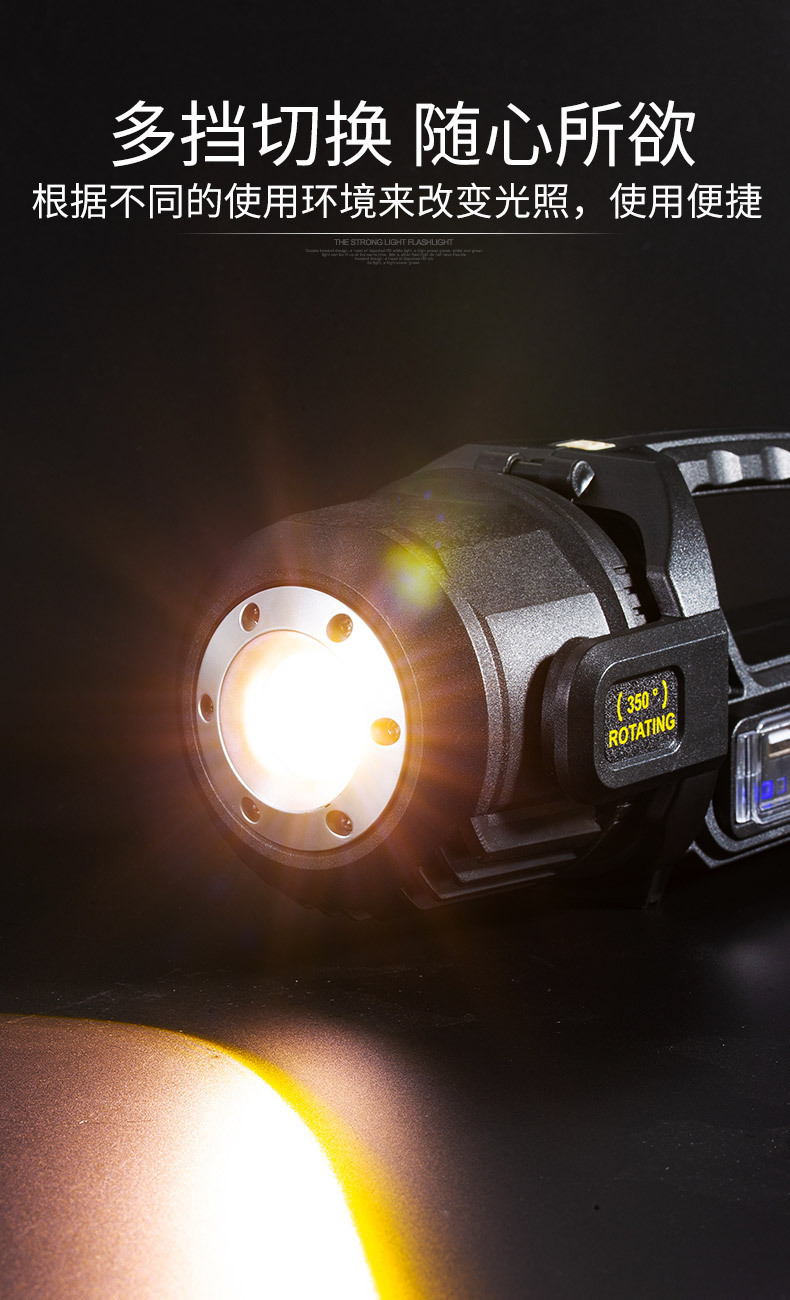新型TYPE-C充電強光懐中電灯多機能サーチライト活動回転ランプヘッド照明手提げライト