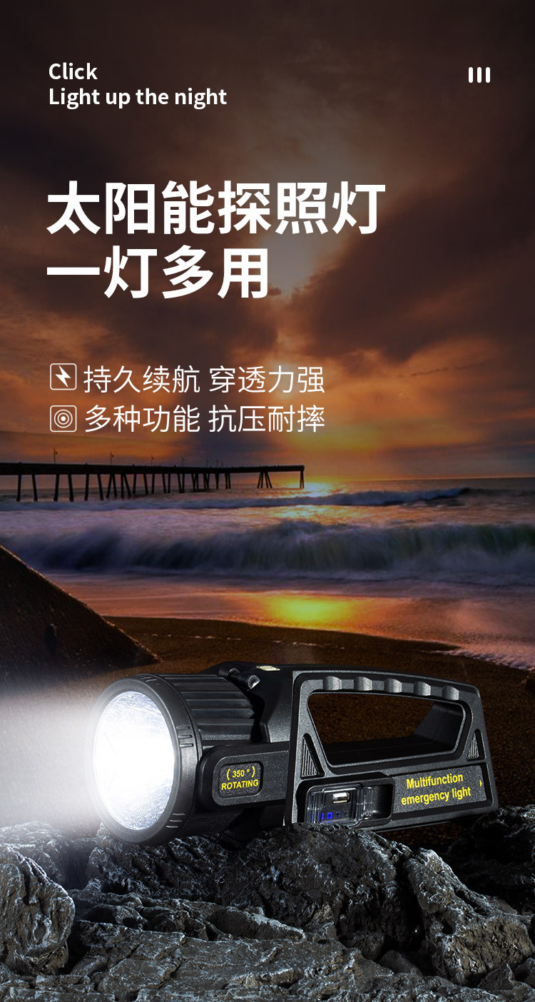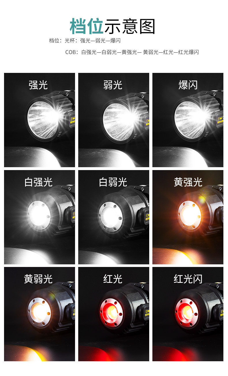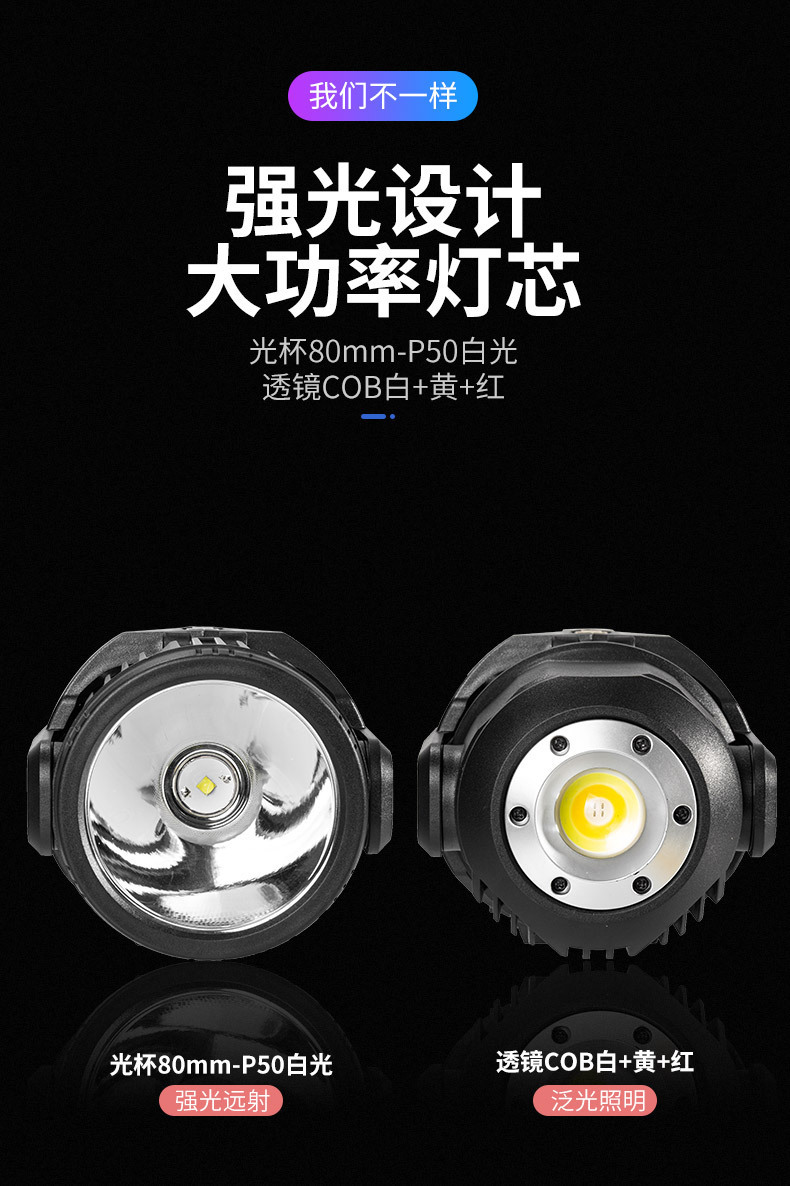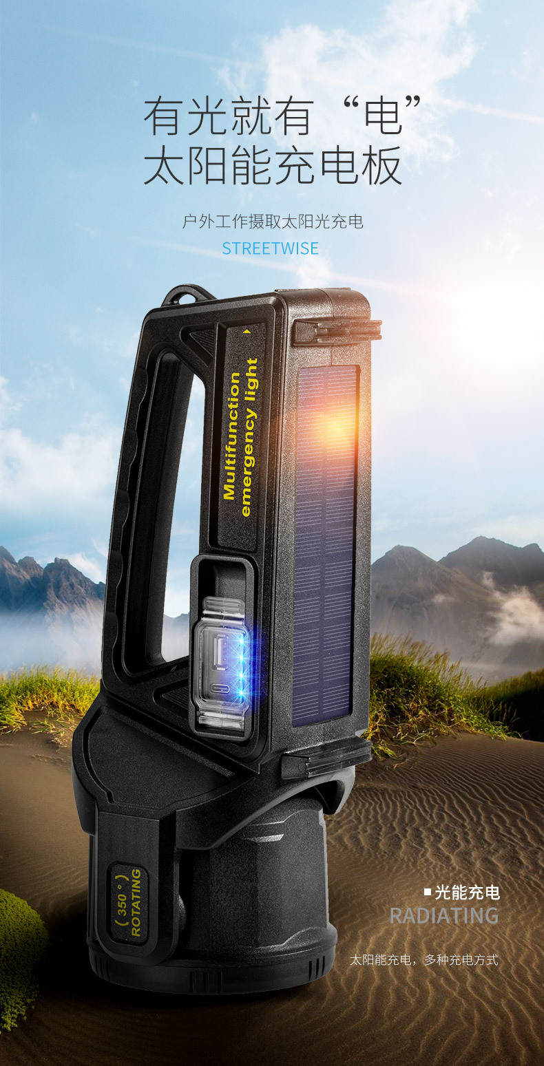 新型TYPE-C充電強光懐中電灯多機能サーチライト活動回転ランプヘッド照明手提げライト