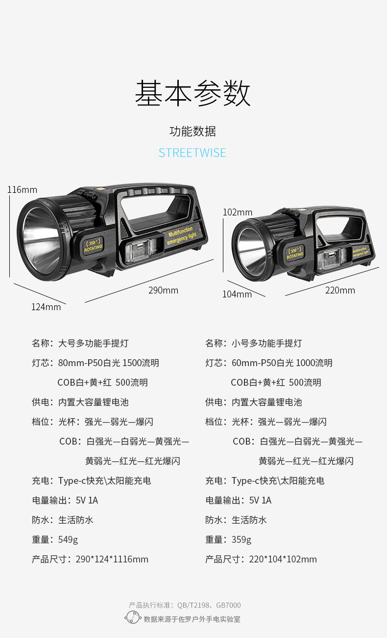 カラー W5166型トランペット回転多機能ハンディライト,W5167型大型回転ヘッド多機能手提げライト