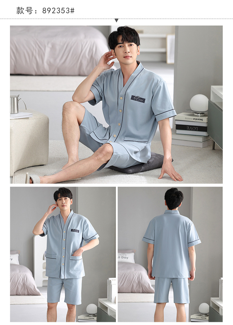 新しいパジャマの男性の夏の純綿の薄い半袖のカジュアルなゆったりした夏のカジュアルなカーディガンの大きいサイズの部屋の服のスーツ