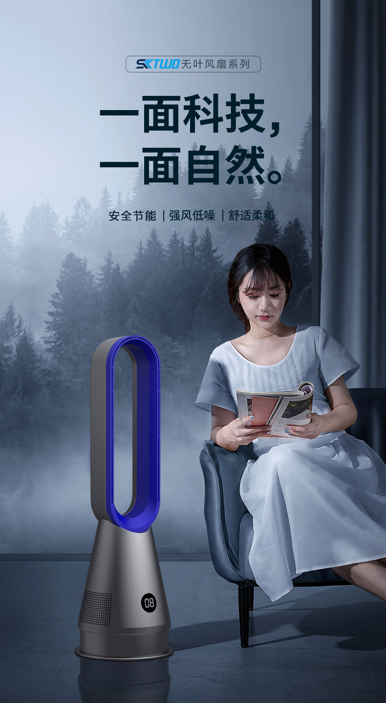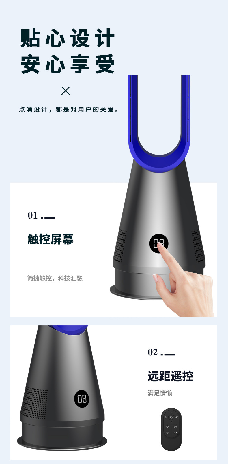 跨境爆品无叶风扇空气过滤循环扇冷暖电风扇家用办公宿舍落地塔扇