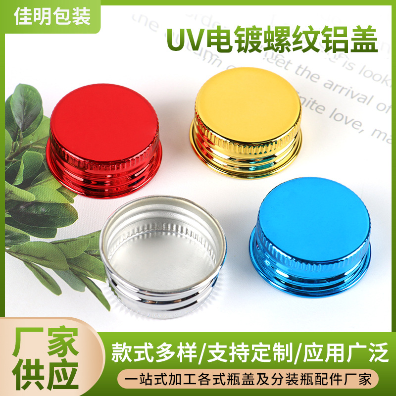 UVメッキねじ込みアルミキャッププラスチックキャップ飲料キャップフリップ金属食品キャップ化粧品ボトル印字可能ロゴ