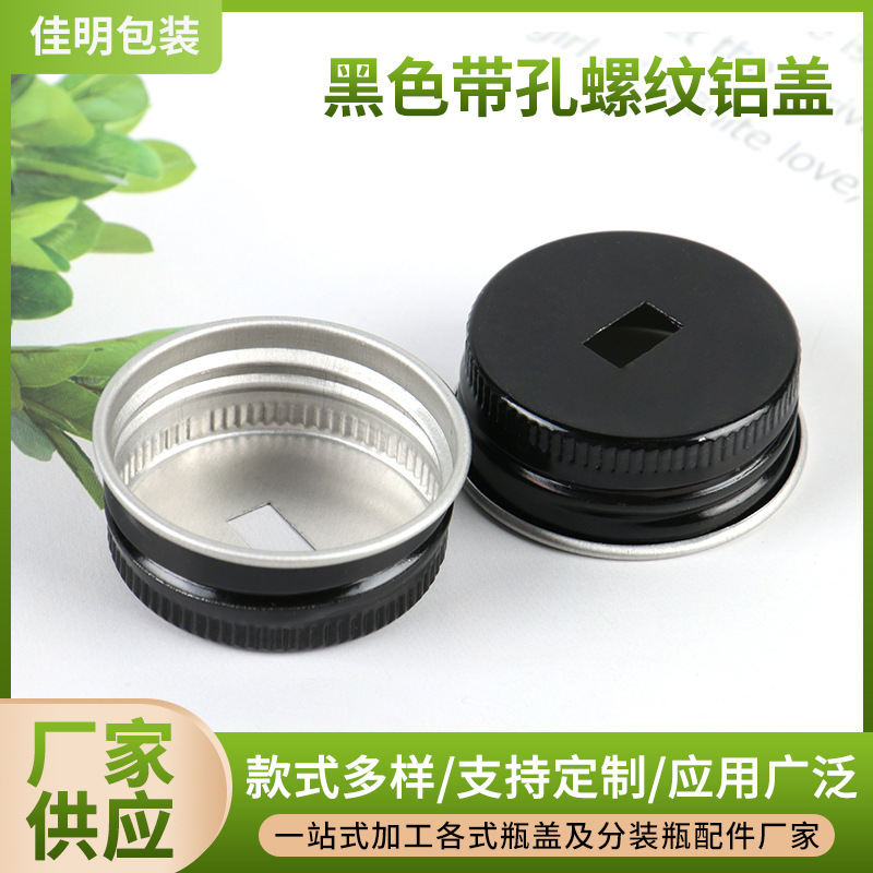 ブラック穴付きスレッドアルミカバーミルクティースクリュー蓋ユニバーサル化粧品飲料ブラックアルミ蓋