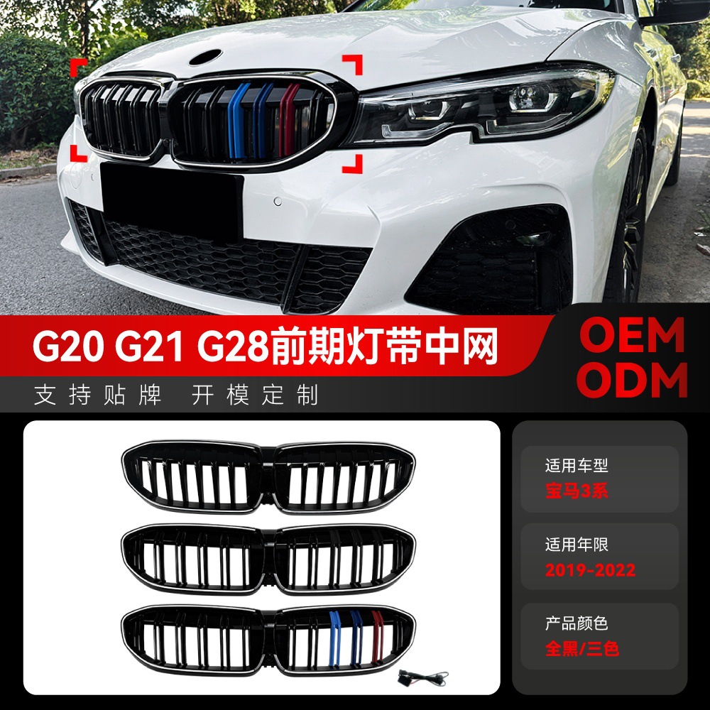 适用2019-2022宝马3系G20 G21 G28发光LED带灯单双线三色中网改装