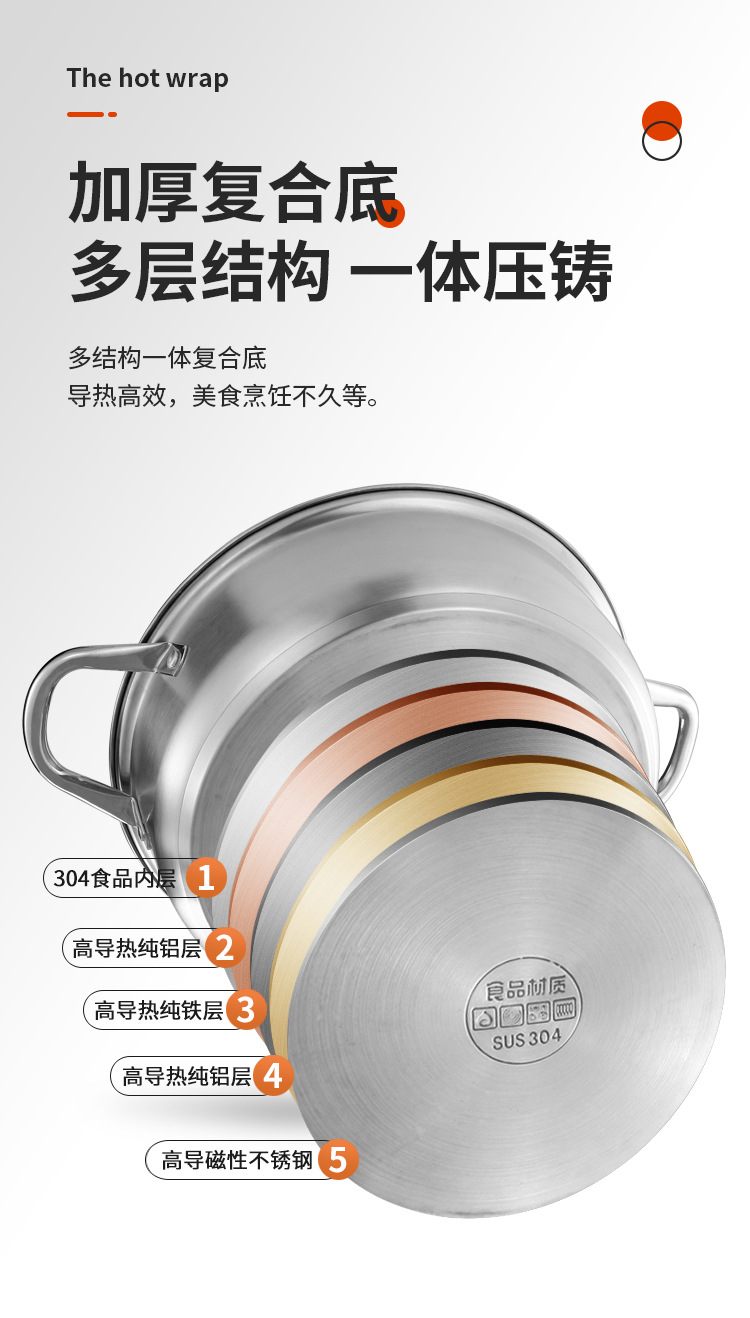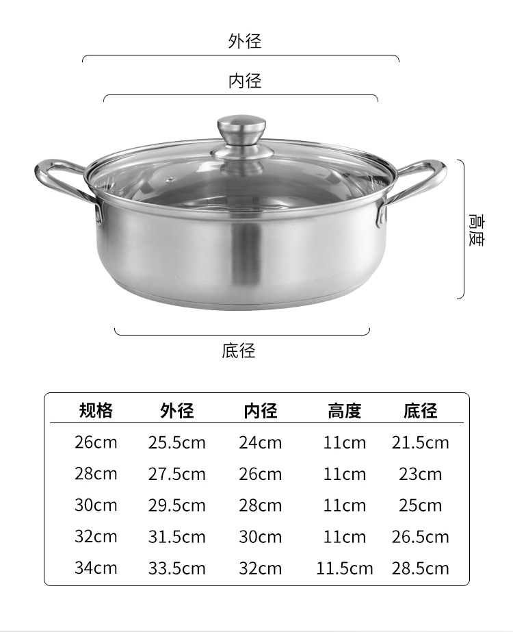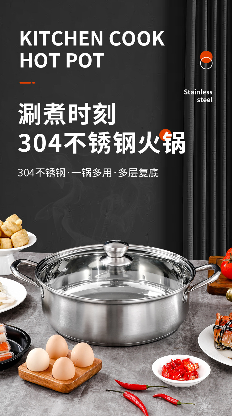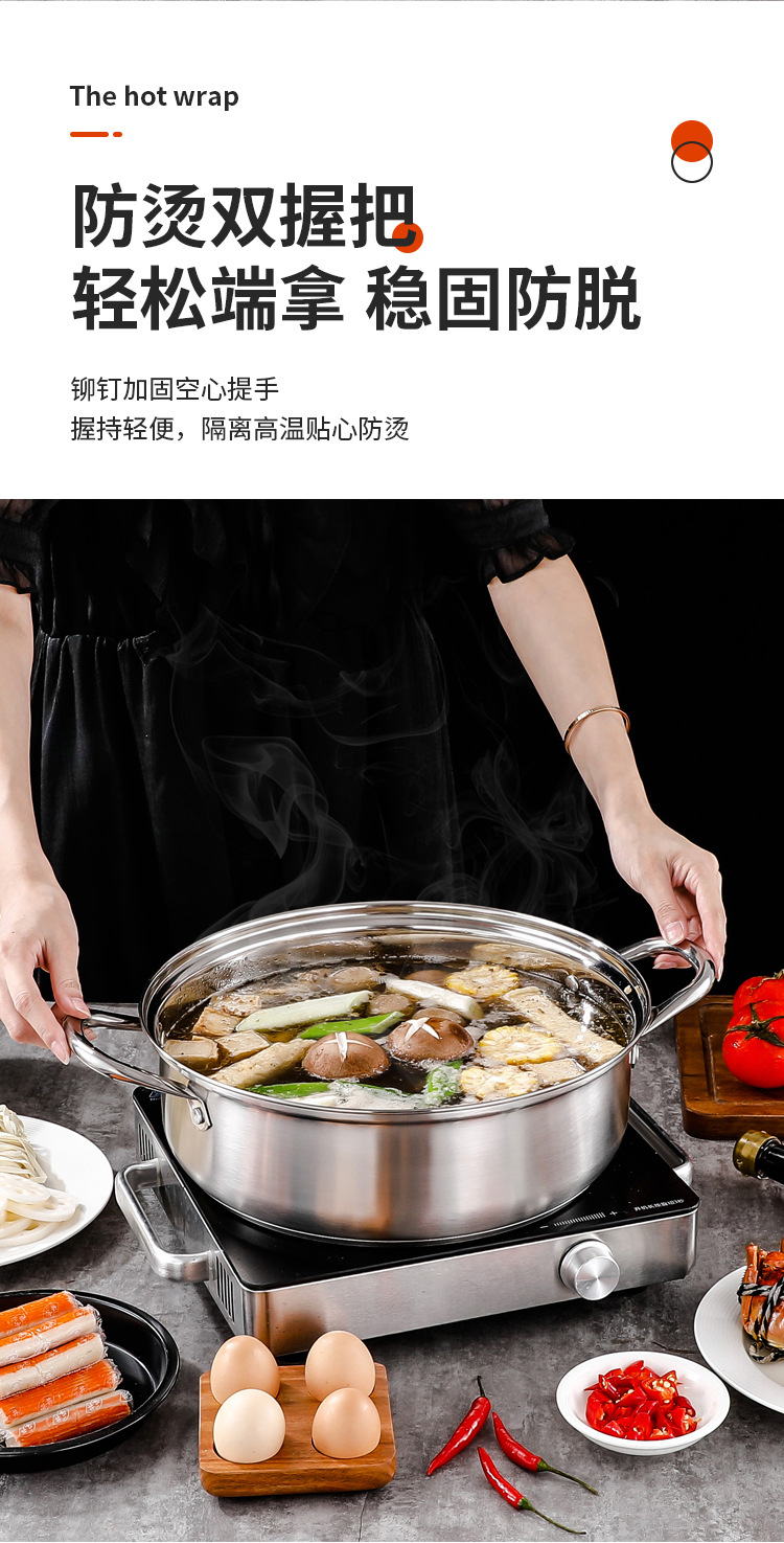 304ステンレス鴨鍋電磁炉鍋二味鍋鍋復底火鍋鉢大容量家庭用商用鍋