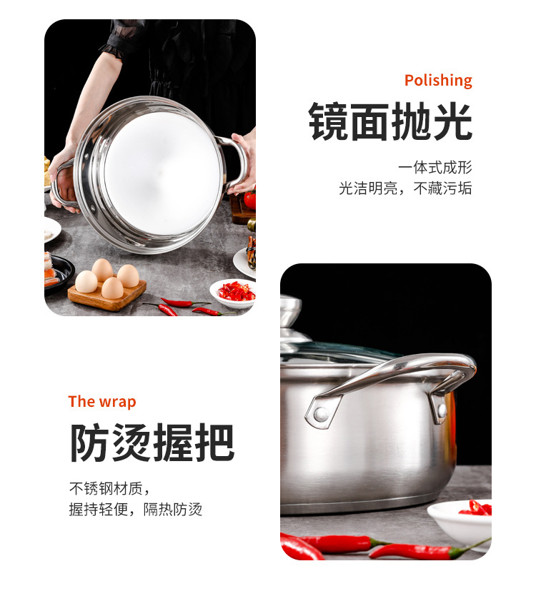 厚型316ステンレス鍋無コーティング清湯鍋具家庭用電磁ガス通用平底鴨湯鍋