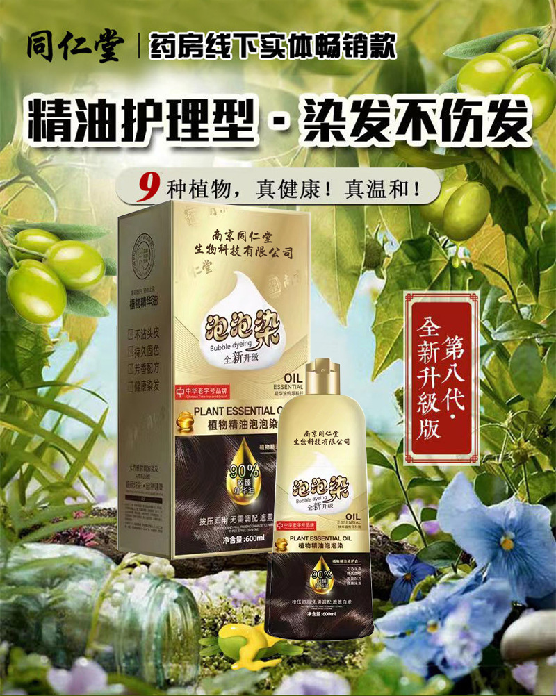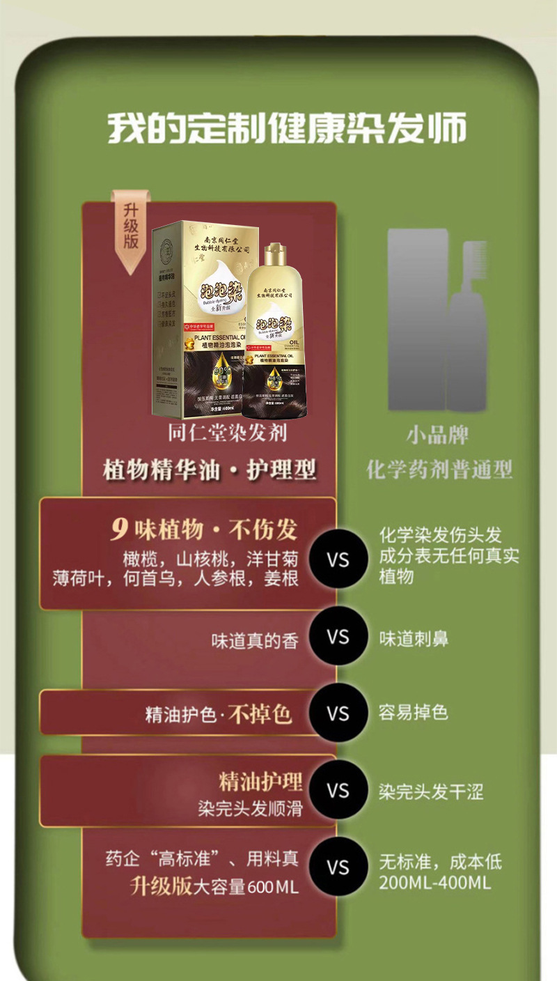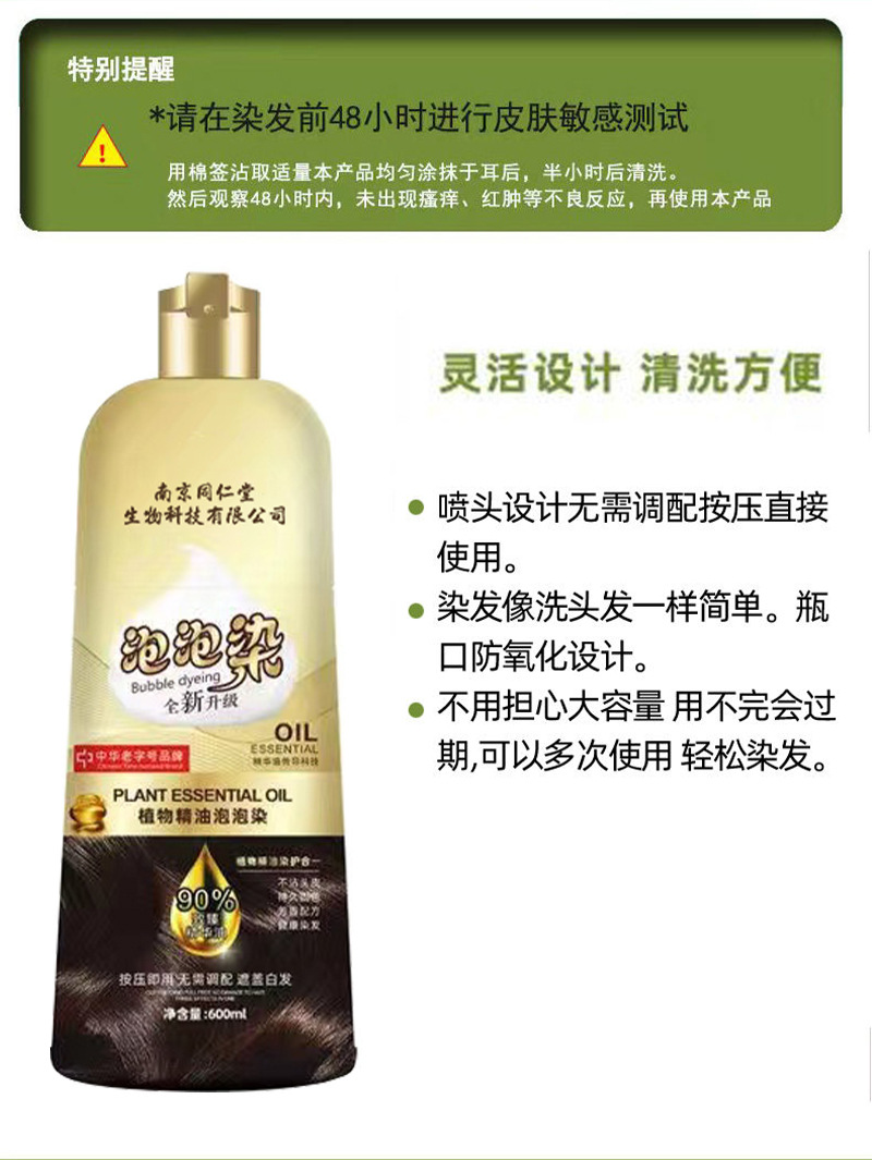 南京同仁堂染发剂植物纯正天然无刺激泡泡染自己在家染发染发膏