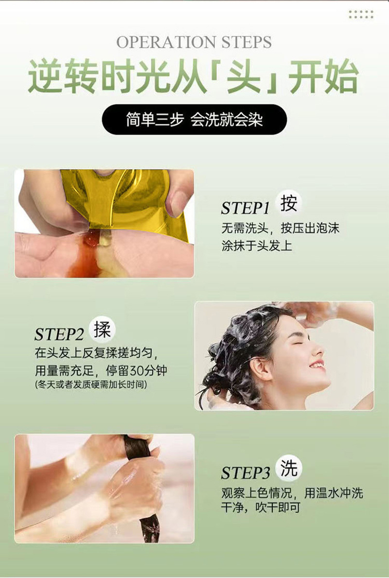 同仁堂染毛剤植物泡染膏無刺激純正品黒茶色染毛膏蓋白家用