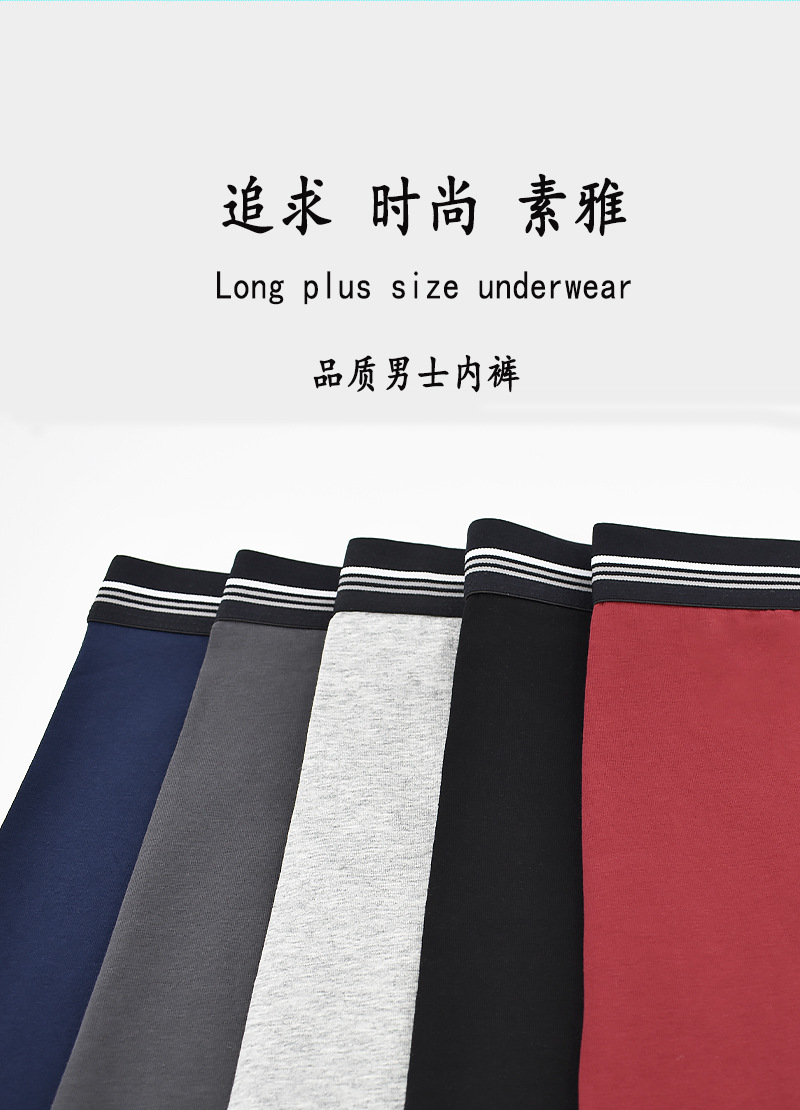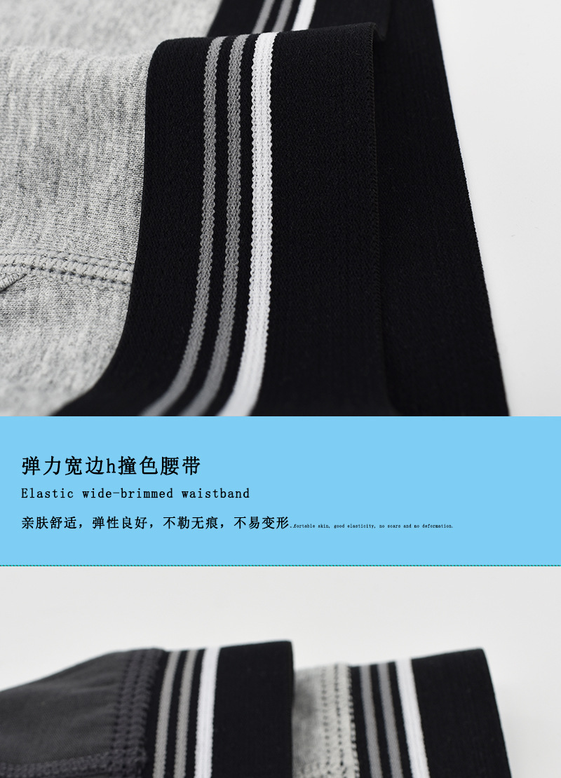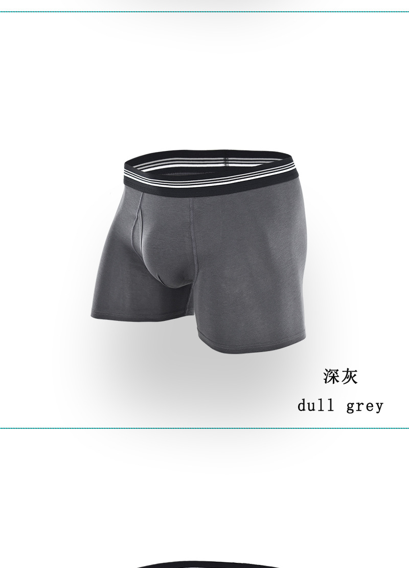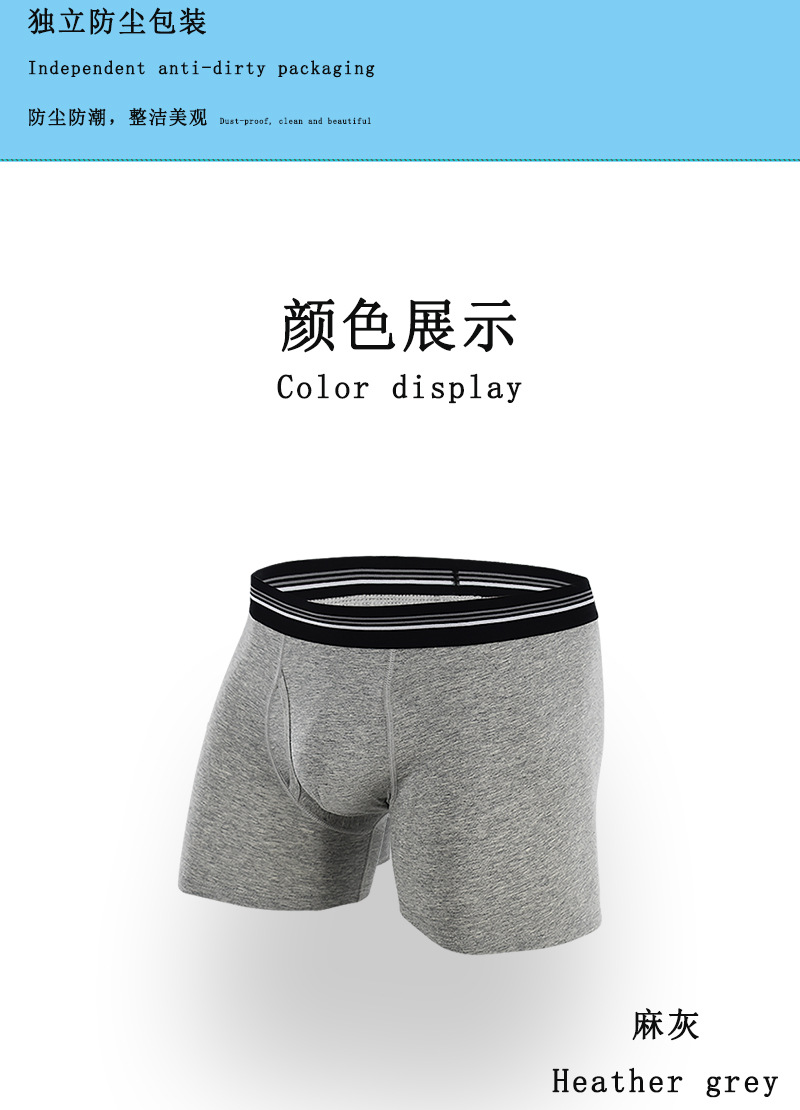 条纹腰带中长款跨境男士平角裤 侧开口透气防磨腿棉质塑身男内裤