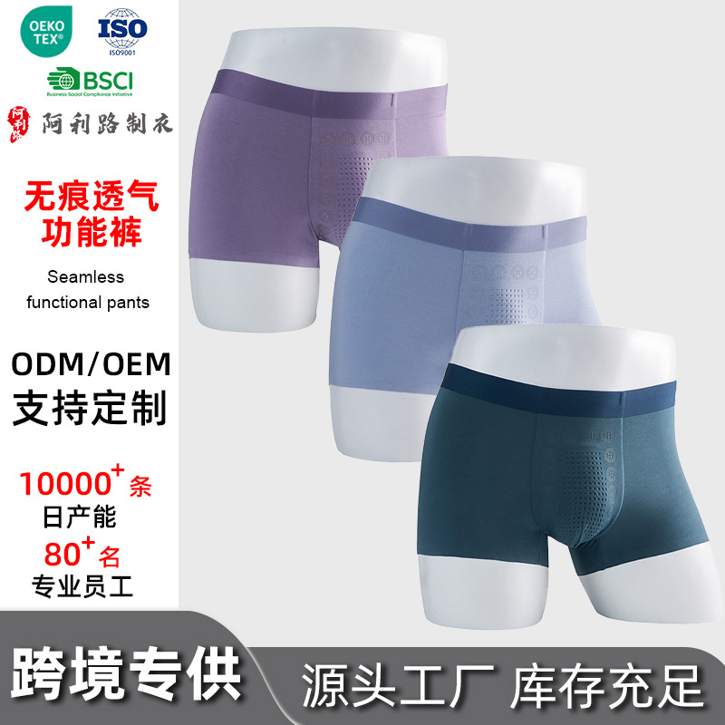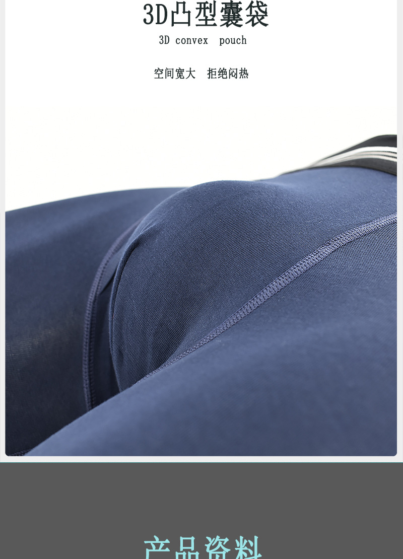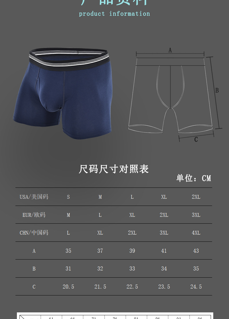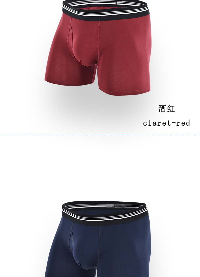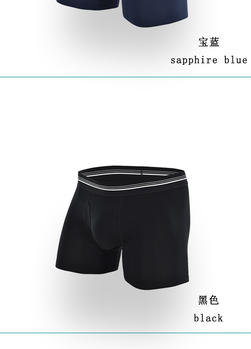 条纹腰带中长款跨境男士平角裤 侧开口透气防磨腿棉质塑身男内裤