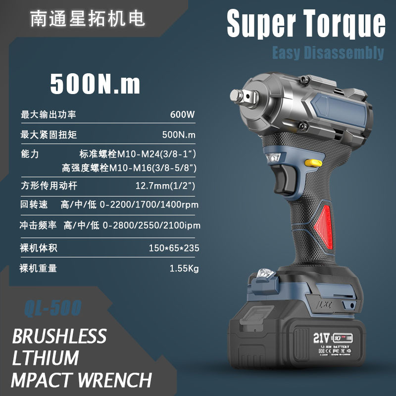クロスボーダー500N.mブラシレスリチウム電気インパクトレンチ21V充電レンチ自動車修理大工架子工リチウム電気工具