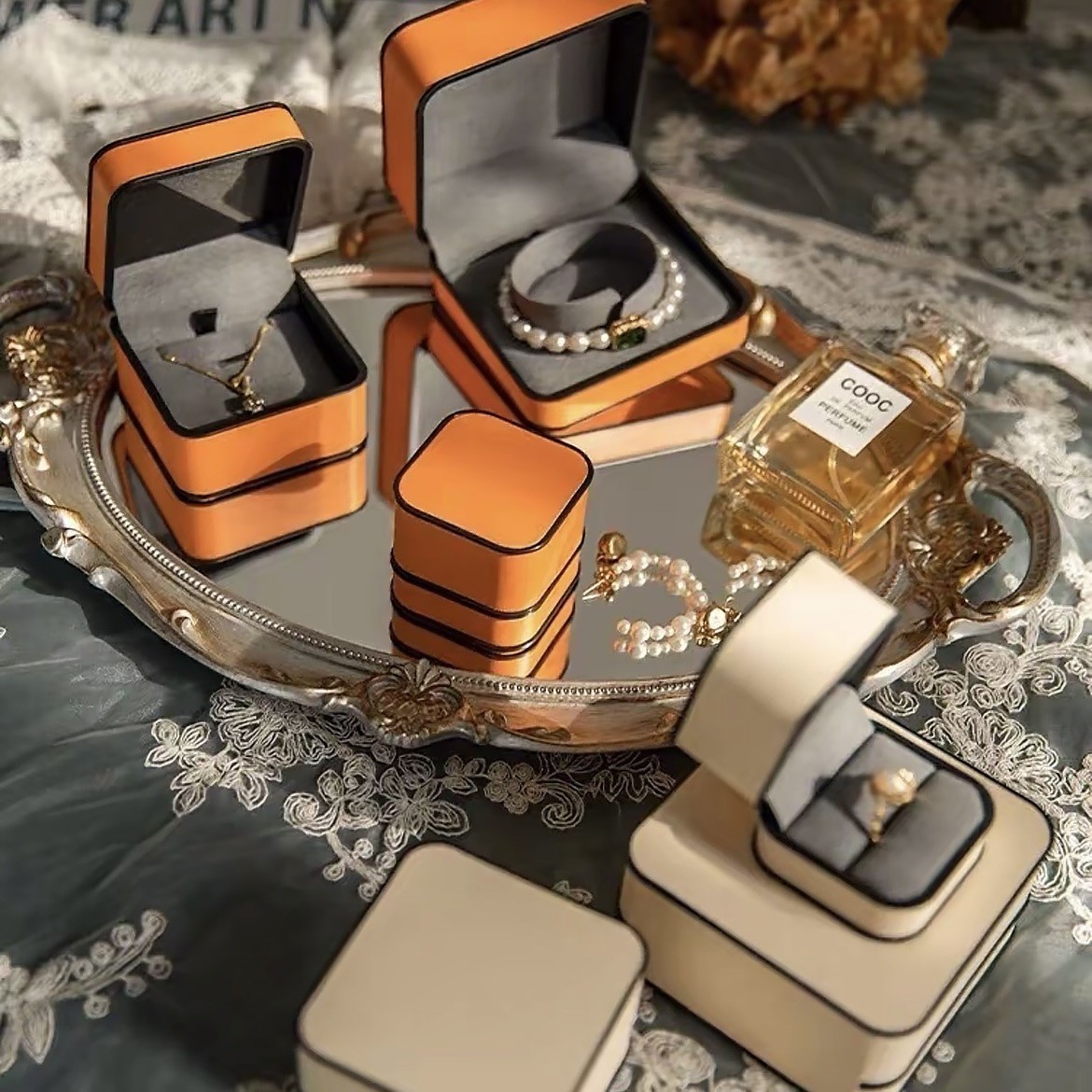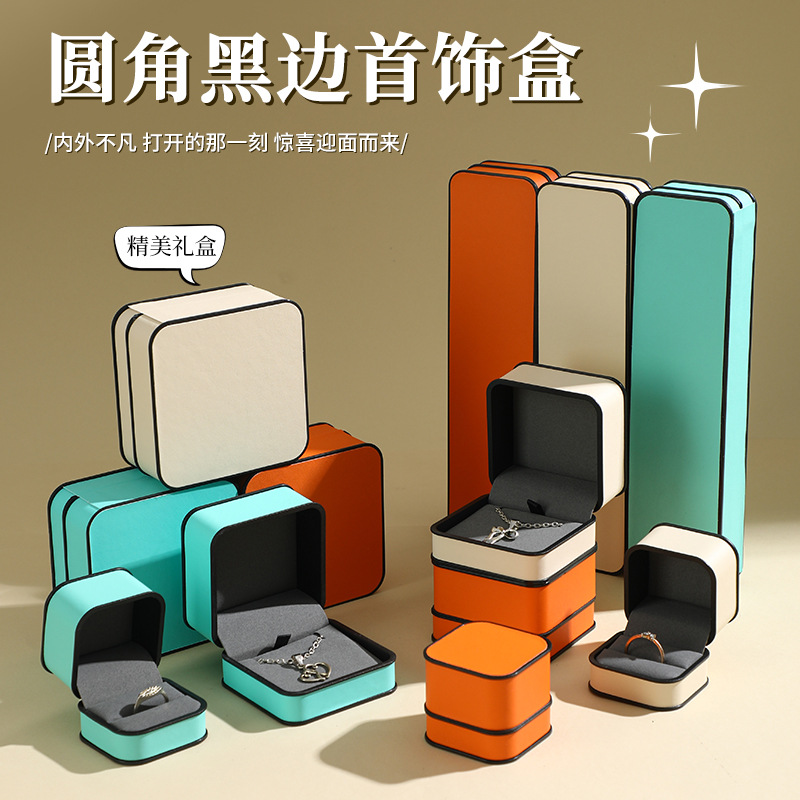角丸黒エッジ Pu レザーハイエンドジュエリーボックスジュエリーパールネックレスブレスレットリングペンダントイヤリング包装ボックス卸売