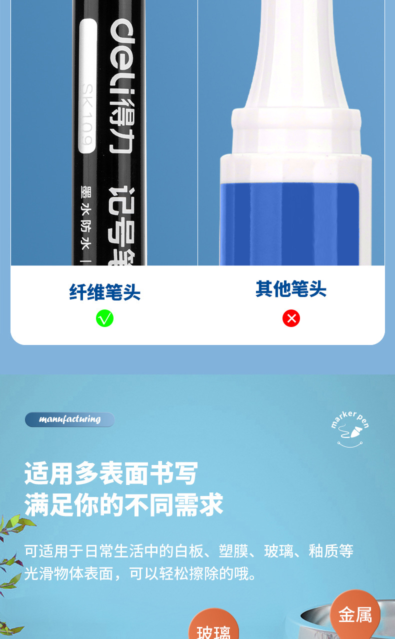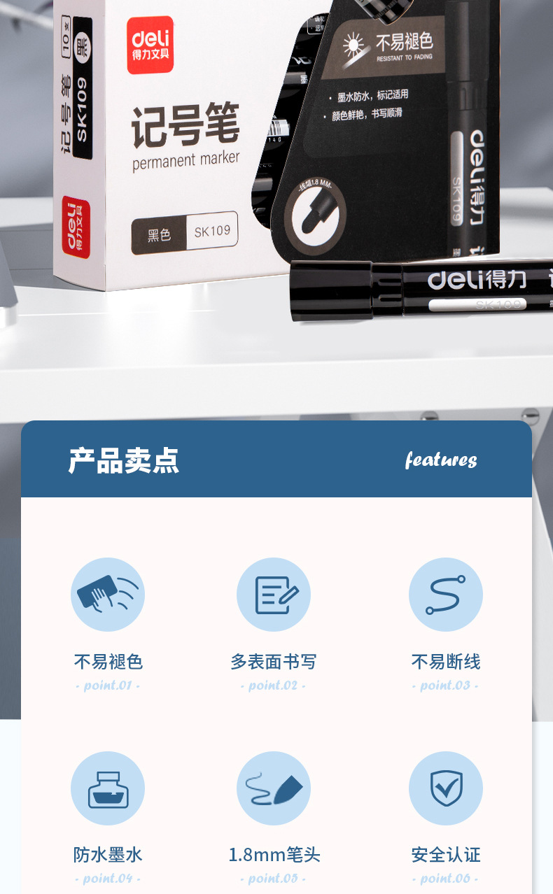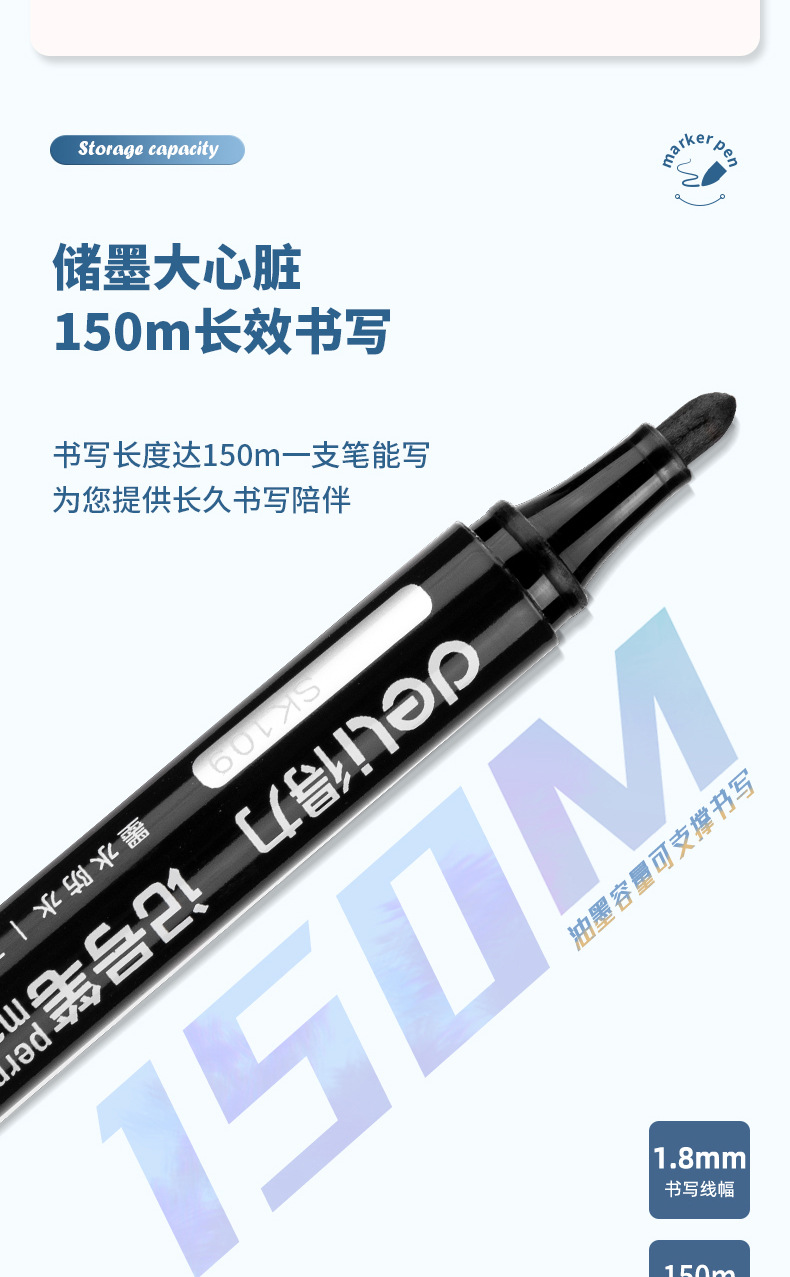 得力6823双头记号笔勾线笔黑色防水防油不掉色学生安全无毒油性笔