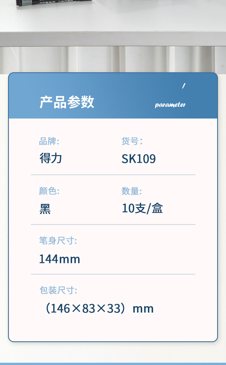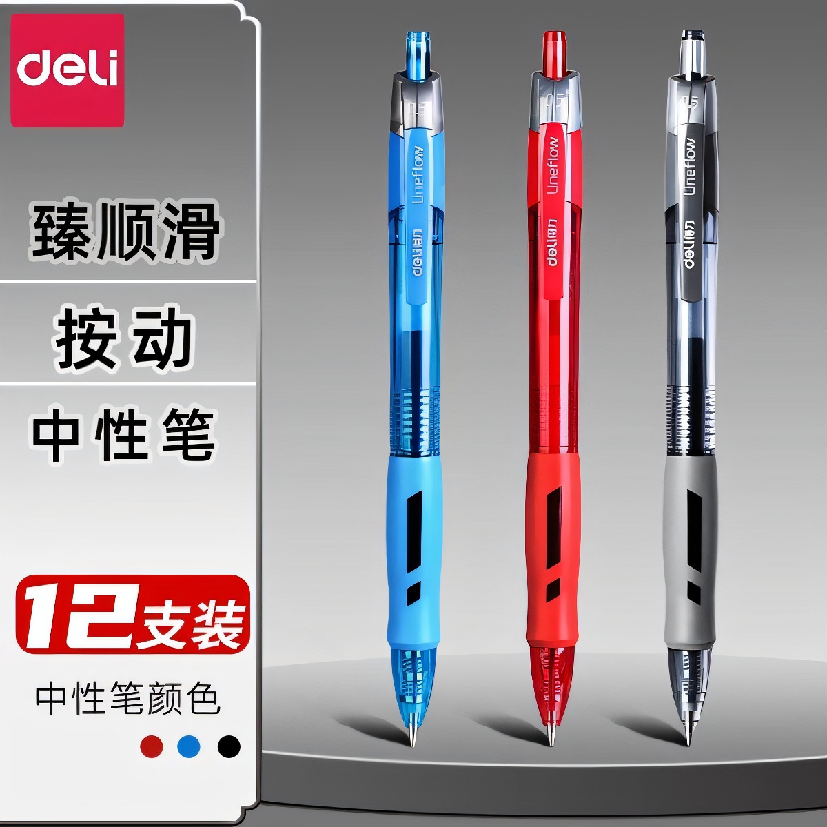 得力s08中性ペン押し式至順滑事務学生専用0.5黒サインペン