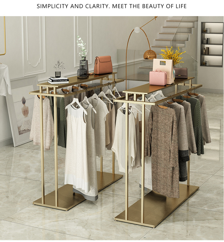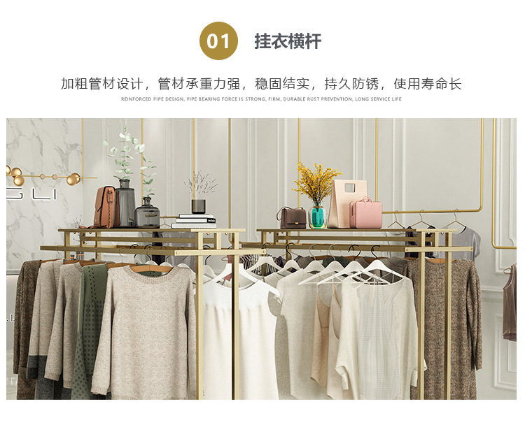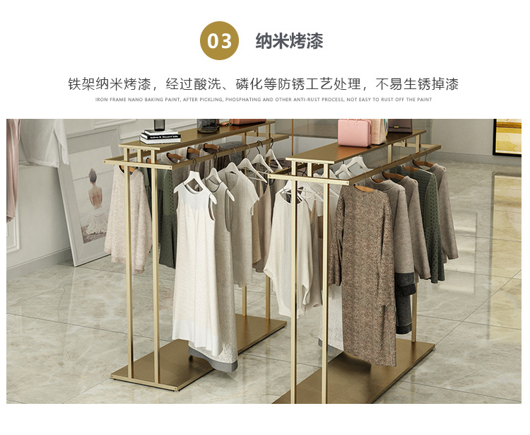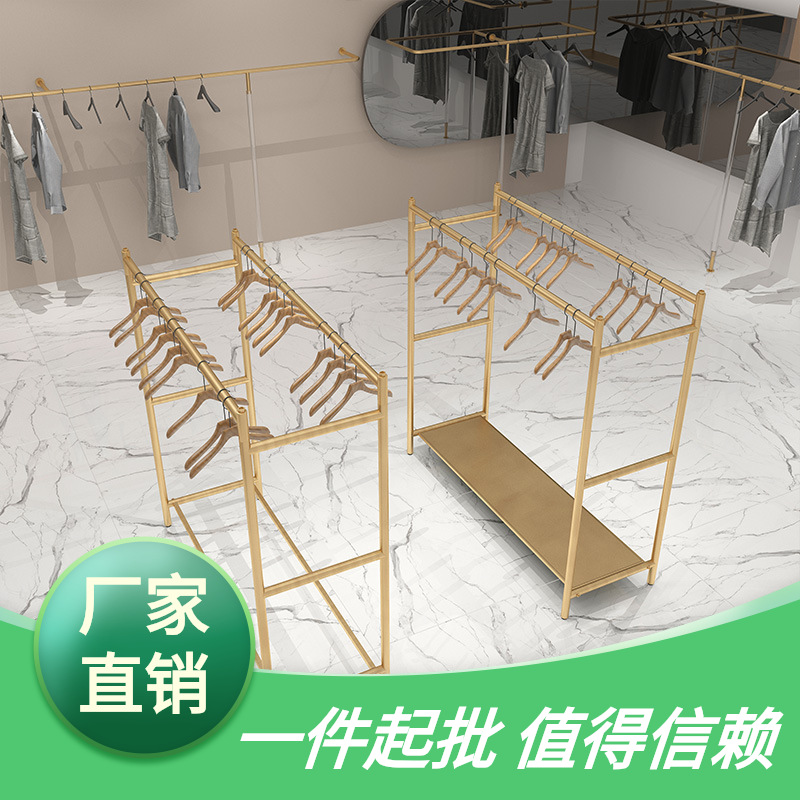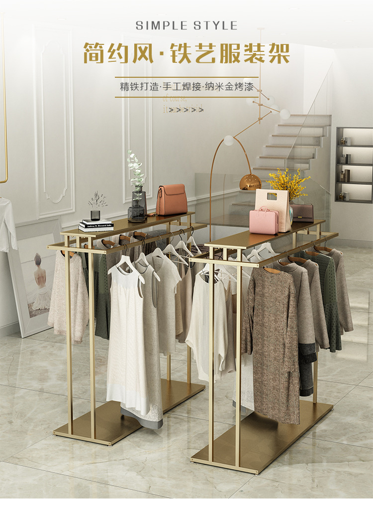 服装店中岛双排展示架金色加粗挂衣架男女装店落地式双杆陈列货架