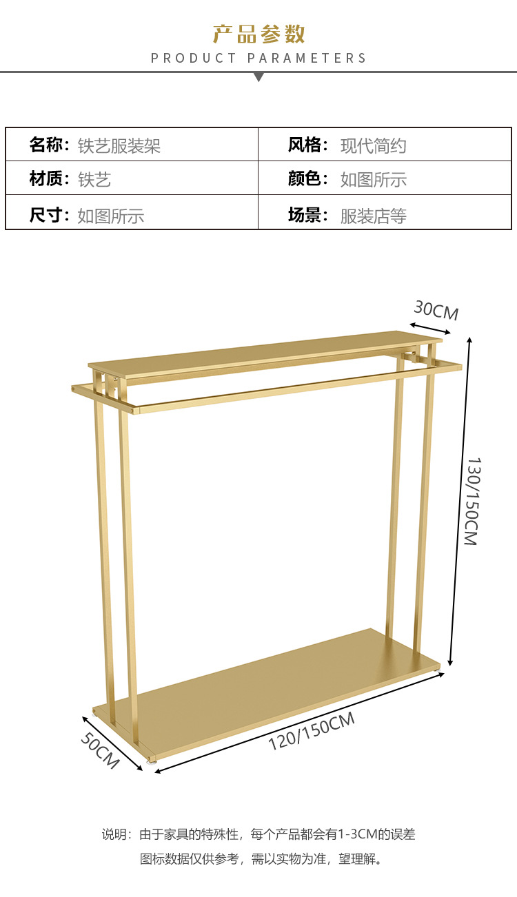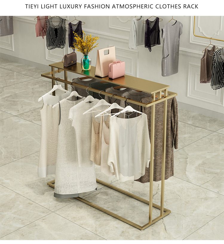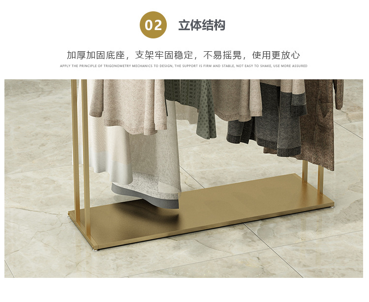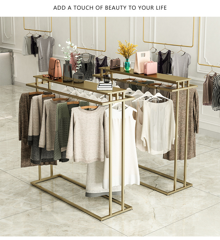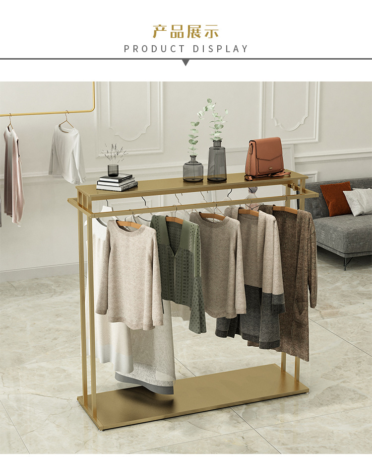 服装店中岛双排展示架金色加粗挂衣架男女装店落地式双杆陈列货架