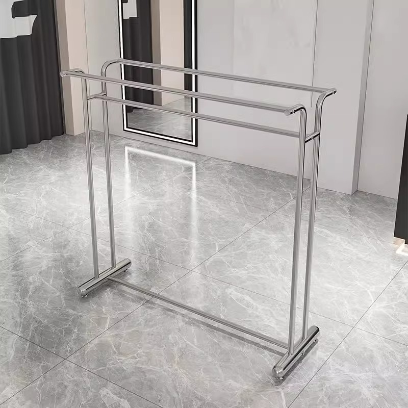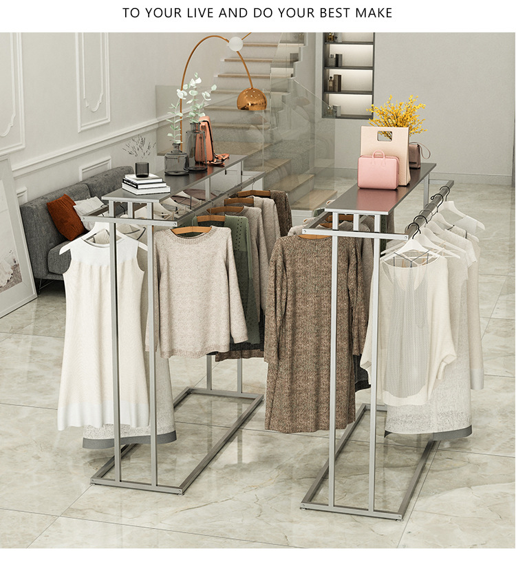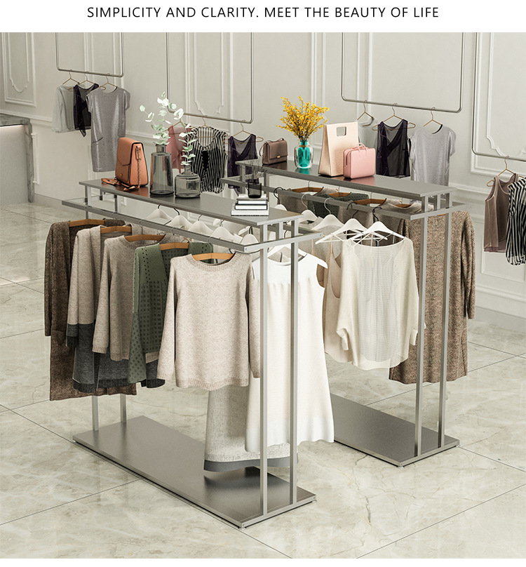 洋服店ステンレス展示棚二重棒二重列中島掛けハンガーシンプル男性婦人服陳列棚