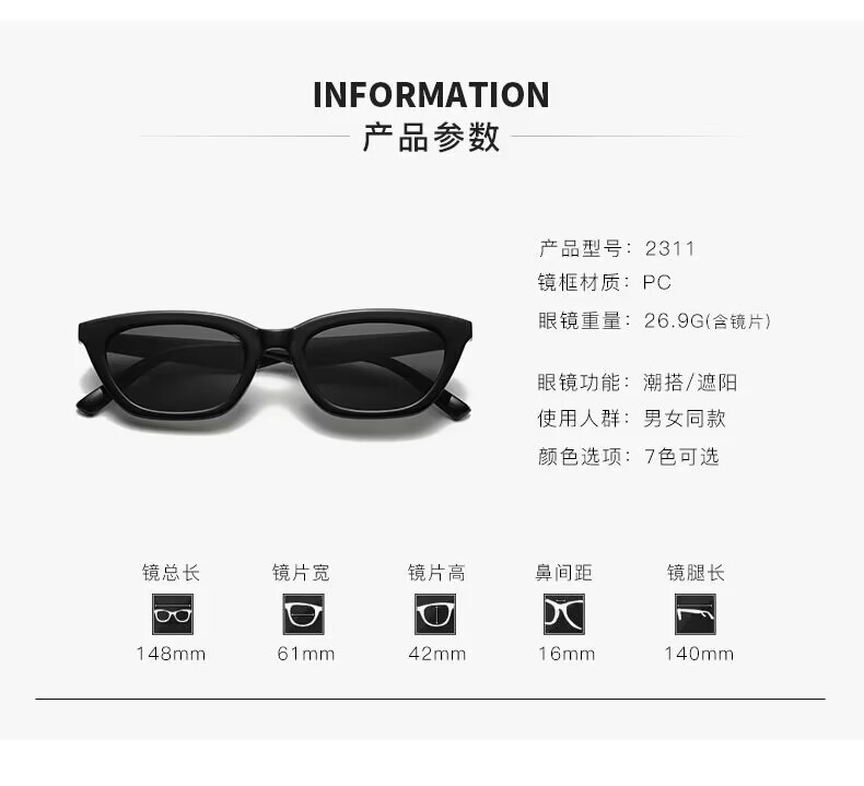 2025新款韩版猫眼墨镜男女高级感凹造型复古时髦防紫外线太阳眼镜