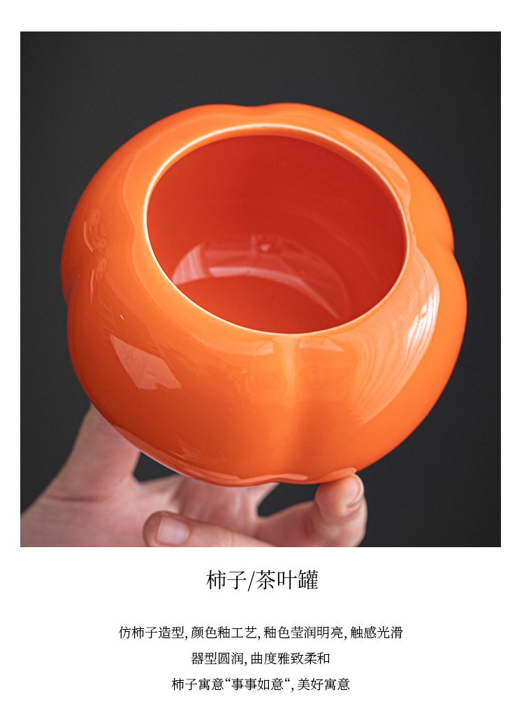柿茶葉缶トランペット柿柿如意喜糖缶陶磁器茶密封缶結婚祝い柿お土産