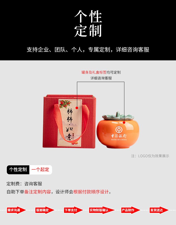 無料ロゴ入り陶磁器柿茶葉缶柿柿如意大サイズ貯蔵缶柿喜糖缶陶磁器缶