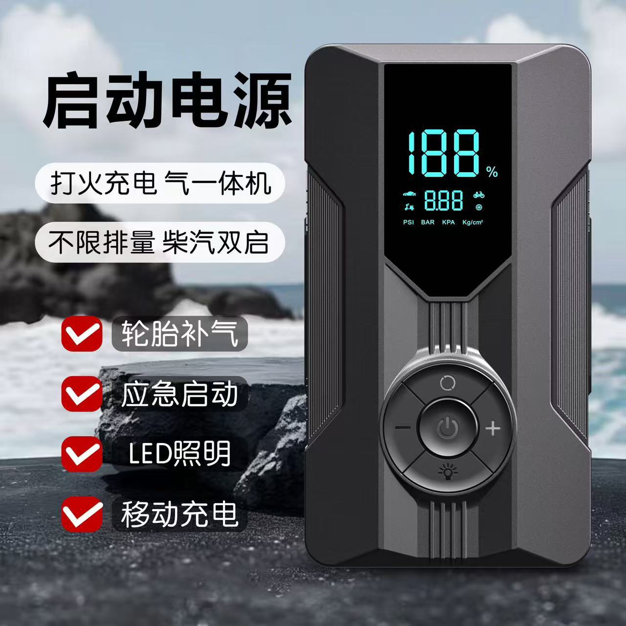 ポータブル12V車用緊急始動電源、パワーバンク、エアポンプ、パワーバンク、多機能オールインワンマシン